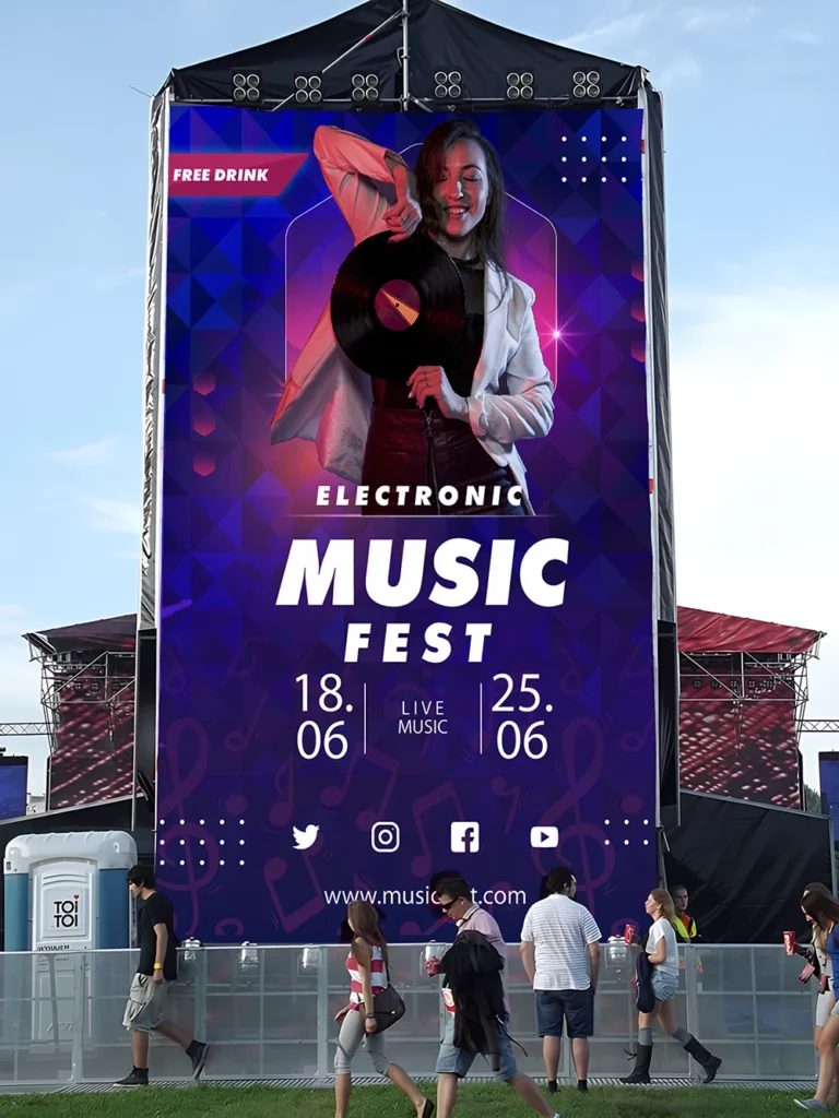 Bei Konzerten und Musikfestivals sind großformatige Drucke unverzichtbar: für Bühnenrückwände, Sponsorbanner oder Besucherleitsysteme. Printmercial.de realisiert UV-Druck im Großformat in kürzester Zeit und mit maximaler Farbbrillanz. Dank unserer modernen Technologie können wir Motive auf unterschiedlichsten Materialien drucken – in exzellenter Auflösung und mit höchster Witterungsbeständigkeit. So erhält jedes Event ein professionelles, einheitliches Erscheinungsbild.