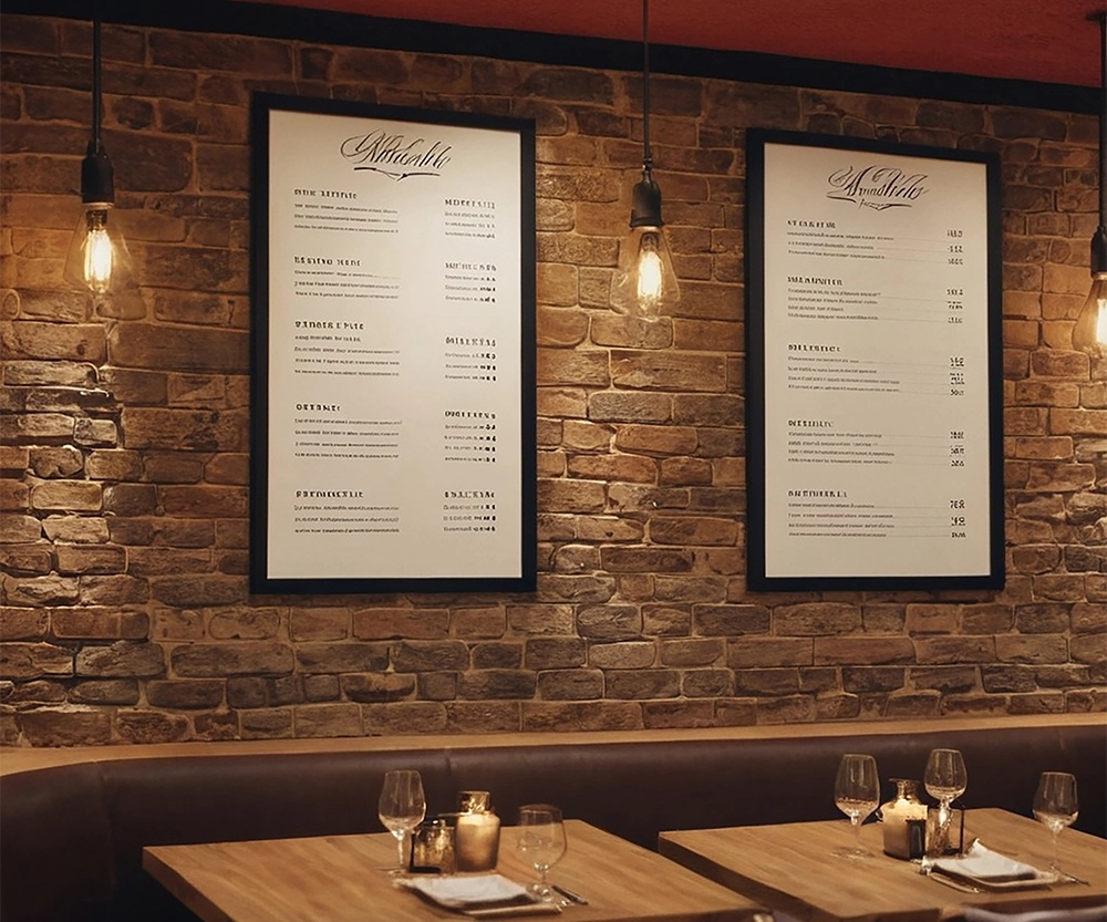 - Speise- und Getränkekarten,
