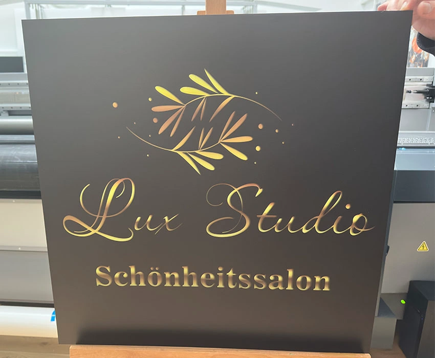 Acrylglas Schilder matt/milchig sind eine elegante Wahl für moderne Markenkommunikation. Unsere Referenzen zeigen fertige Projekte für Studios, Restaurants, Coffeeshops, Beauty-Salons, Autowerkstätten, Bäckereien und lokale Dienstleistungen. Der UV-Direktdruck auf Acrylglas liefert kräftige Farben, hohe Detailtreue und eine sehr saubere Kantenwirkung – ideal für hochwertige CI-Beschilderung. Ob rund, rechteckig oder konturgeschnitten: diese Plexiglas Tafeln lassen sich hervorragend an individuelle Formate und Markenfarben anpassen und wirken zugleich leicht, edel und langlebig. Präsentiert werden unterschiedliche Layouts – Logo-Schilder, Menükarten, Branchenbezeichnungen, Infotafeln – jeweils mit klarer Lesbarkeit und modernem Grafikstil. Unsere Acrylglas Werbetafeln überzeugen in Innenbereichen, Empfängen, Schaufenstern und Showrooms und bieten eine starke, ästhetische Produktpräsentation, die Kunden direkt ins Blickfeld führt.