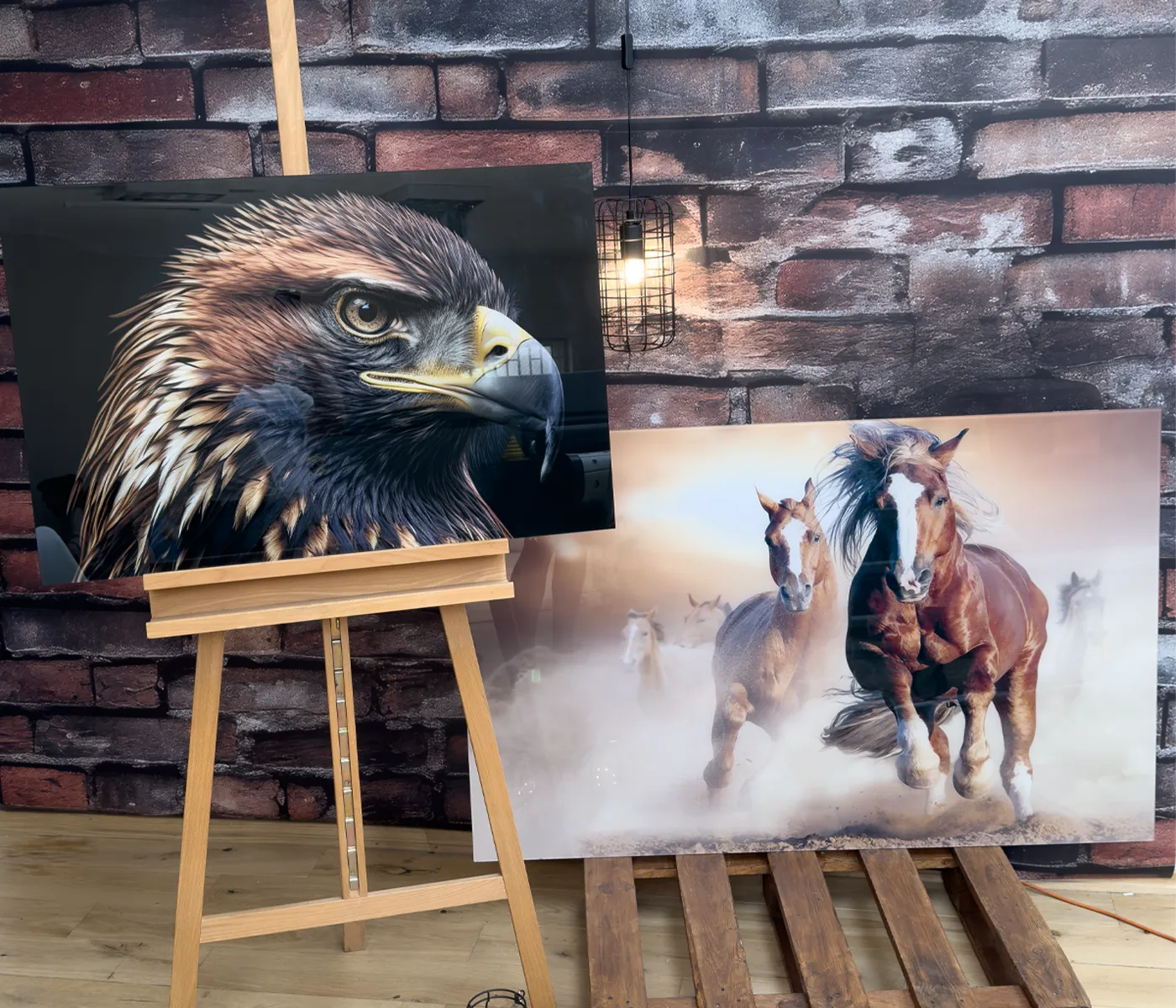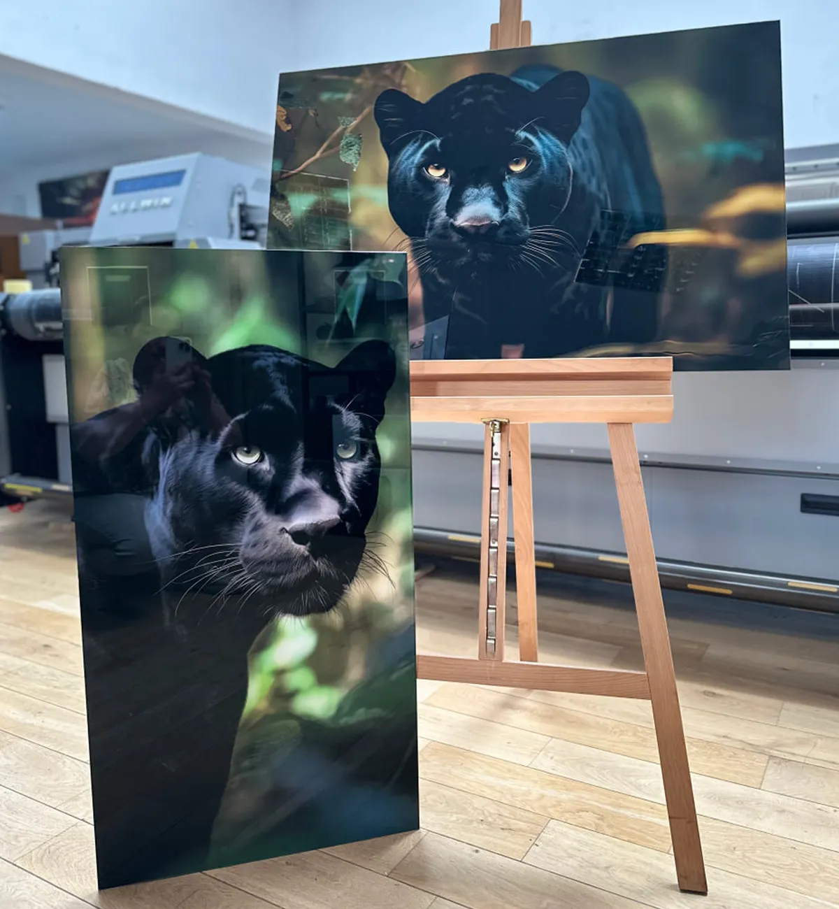 Bild auf Glas drucken – hier zeigen wir Beispiele fertig produzierter Wandbilder auf gehärtetem Glas, die durch Direkt-UV-Druck eine extrem hohe Farbbrillanz und Tiefe erhalten. Solche Motive werden häufig als moderne Glasbilder für Wohnzimmer, Flure, Studios oder Arbeitsräume gewählt, da sie dank glasähnlicher Oberfläche besonders edel wirken. Die Druckschicht ist kratzfest, UV-beständig und bleibt auch bei hoher Lichteinstrahlung farbstabil – ideal für Räume mit großen Fenstern. Je nach Motiv entstehen sehr starke Kontraste und Lichtreflexe, die den 3D-Eindruck verstärken und das Bild wie „leuchten“ lassen. Die Kanten können geschliffen werden, sodass ein fertiges, sauber verarbeitetes Deko-Element entsteht, das direkt montiert werden kann. Durch präzise Produktion im Wunschformat bleiben Details selbst bei großen Größen klar und scharf.