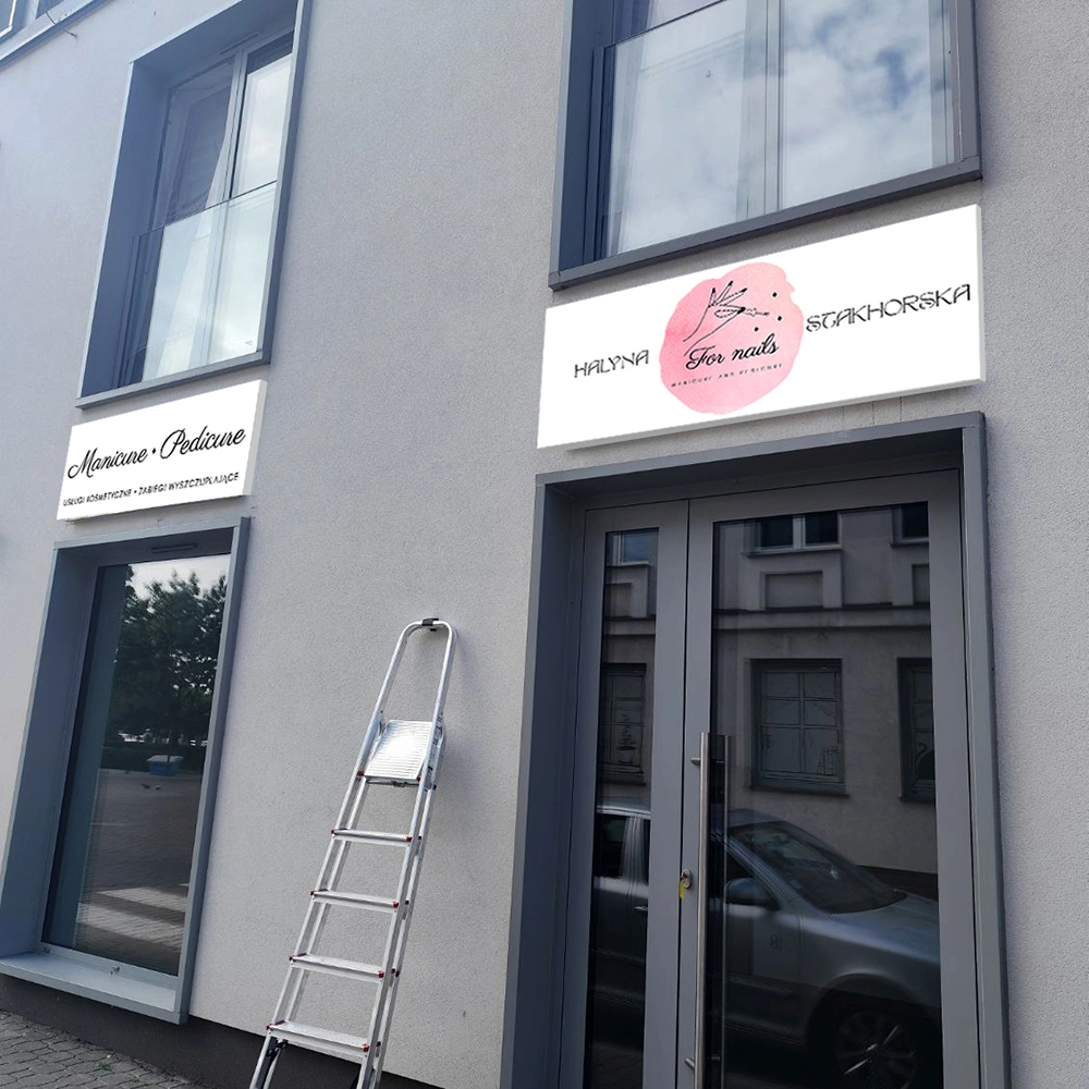 Leuchtkasten aus Dibond – SLIM – hier zeigen wir realisierte Beispiele extrem flacher, stabiler Lichtwerbung für Shops, Gastronomie, Praxen, Beauty-Studios und Servicebetriebe. Diese Bauform ist deutlich dünner als ein klassischer Leuchtkasten, bleibt aber robust und widerstandsfähig. Der UV-Druck sorgt für hohe Farbintensität und präzise Grafikschärfe, auch bei feinen Linien oder kleinen Typografien. Durch die CNC-gefrästen Elemente entsteht eine sehr cleane, elegante Frontoptik. Unsere Referenzen zeigen, wie solche LED Leuchtreklame an Fassaden, Vordächern, Eingängen oder Schaufenstern eingesetzt wird – als Markenlogo, Orientierungselement oder vollständig gestaltete Werbetafel. Die Kombination aus moderner Lichttechnik, Dibond-Material und flacher Bauweise bietet eine edle, langlebige Lösung, die besonders bei Abendlicht eine starke visuelle Präsenz erzeugt und das Corporate Design eines Unternehmens sofort sichtbar transportiert.