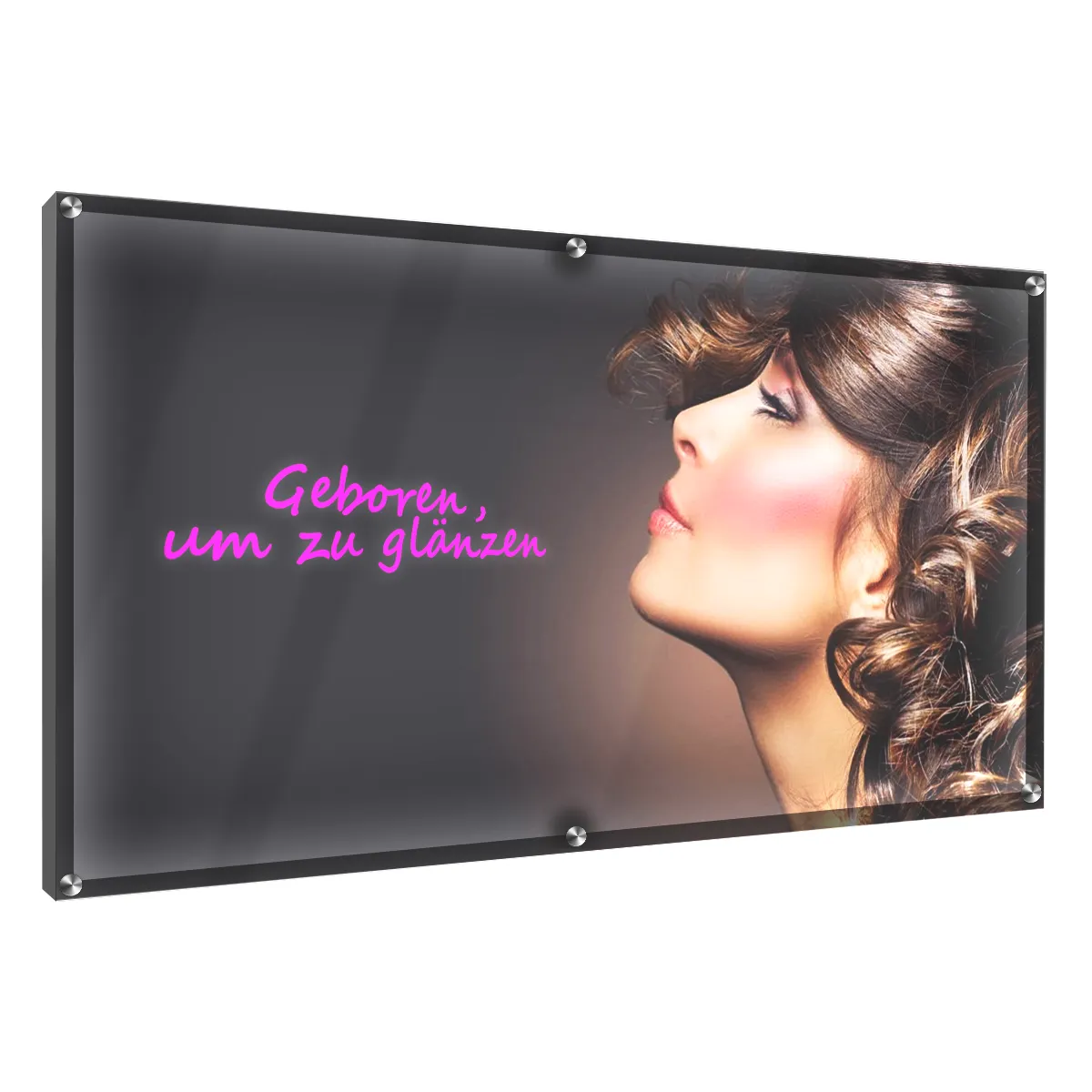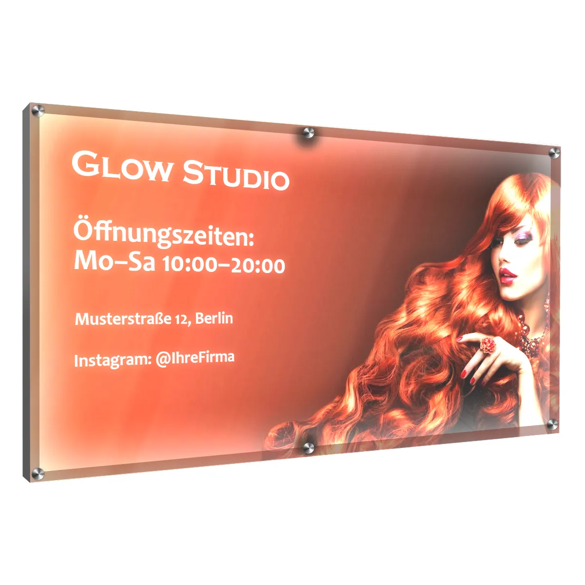 Unsere beleuchteten Plexiglas-Schilder eignen sich ideal für Fassaden von Geschäften, Restaurants, Cafés, Hotels, Kosmetikstudios oder Büroräumen. Ebenso werden sie häufig in Einkaufszentren, Messeständen oder Innenräumen als dekorative LED-Werbetafeln und Leuchtwerbung aus Plexiglas eingesetzt.