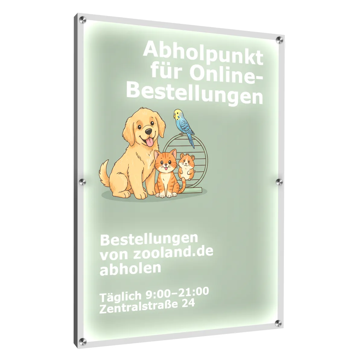 Startseite » Katalog » Werbeschilder & Werbetafeln » Beleuchtetes Plexiglas-Schild