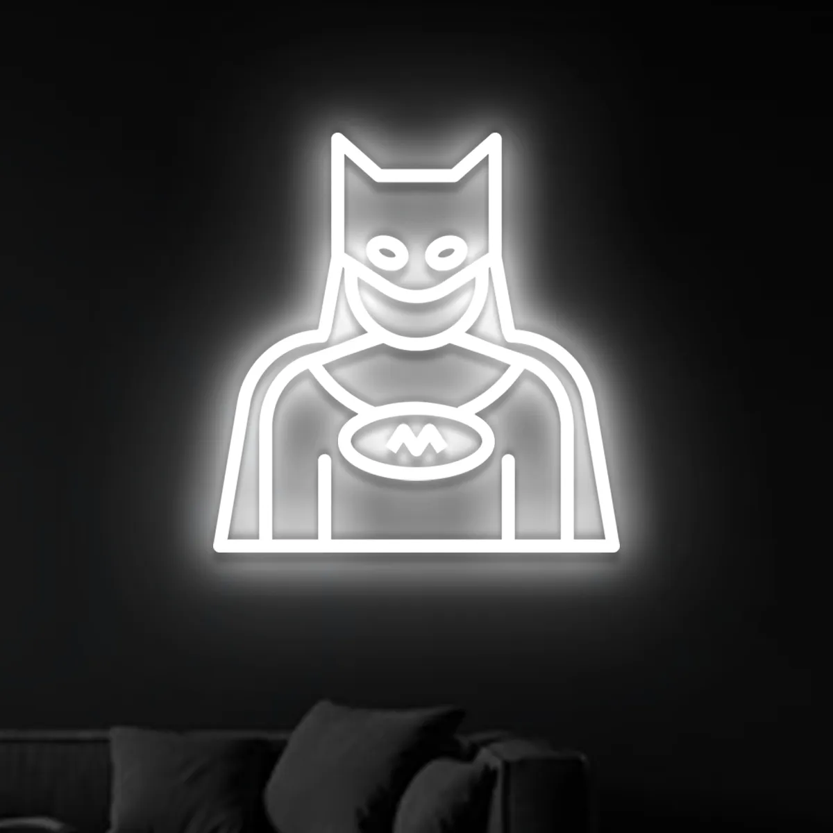 Hängen Sie den Neon Batman im Wohnzimmer, Schlafzimmer, Kinderzimmer, Gaming-Bereich, Home-Bar oder Büro auf – überall dort, wo ein stilvoller und wiedererkennbarer Akzent benötigt wird. Dieser Dark Knight-Neon gefällt sowohl Kindern als auch Erwachsenen und verwandelt eine gewöhnliche Wand sofort in ein effektvolles Dekorationselement.