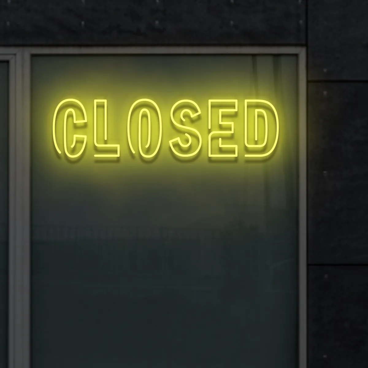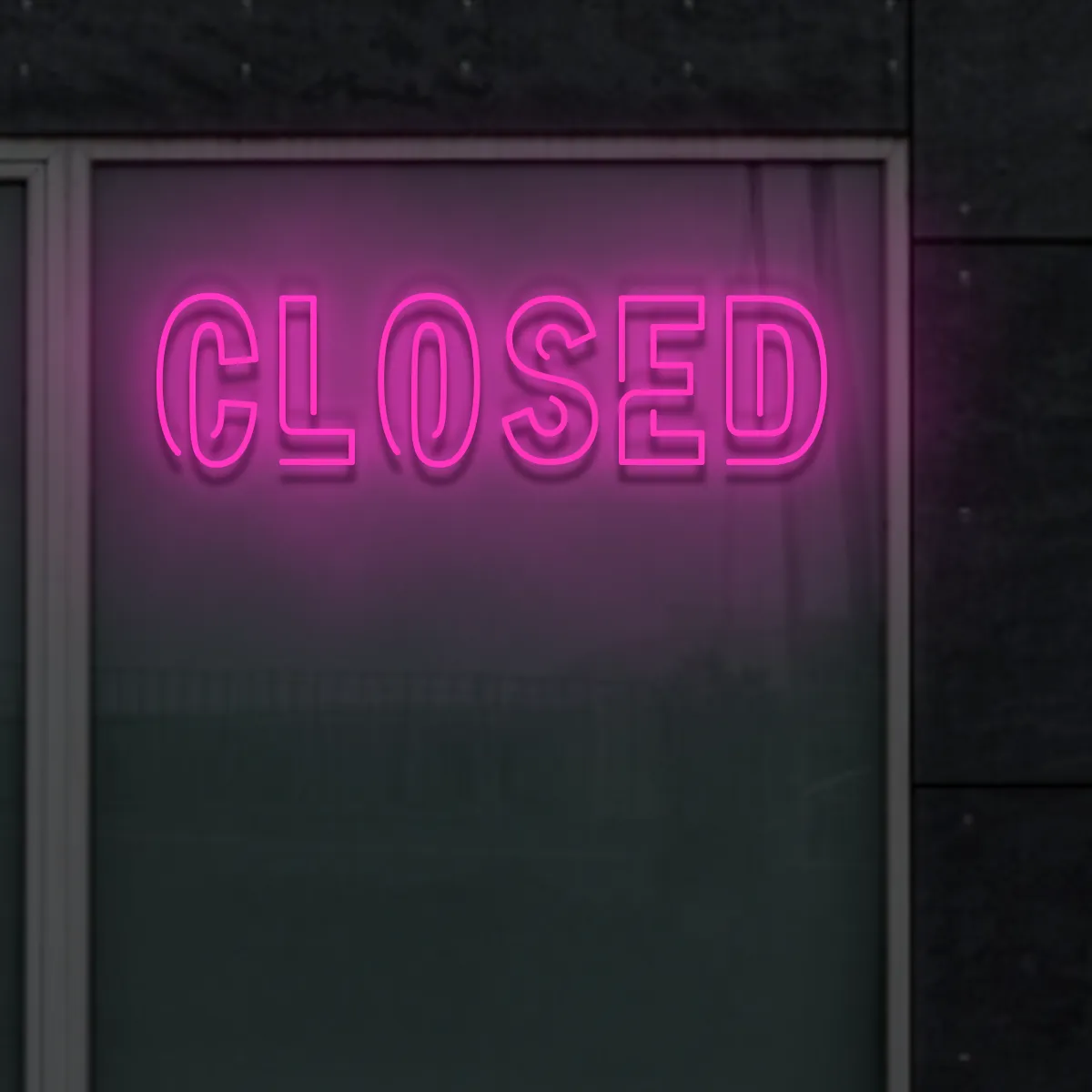Neon „Closed“ – stilvoller LED-Schriftzug für moderne Unternehmen