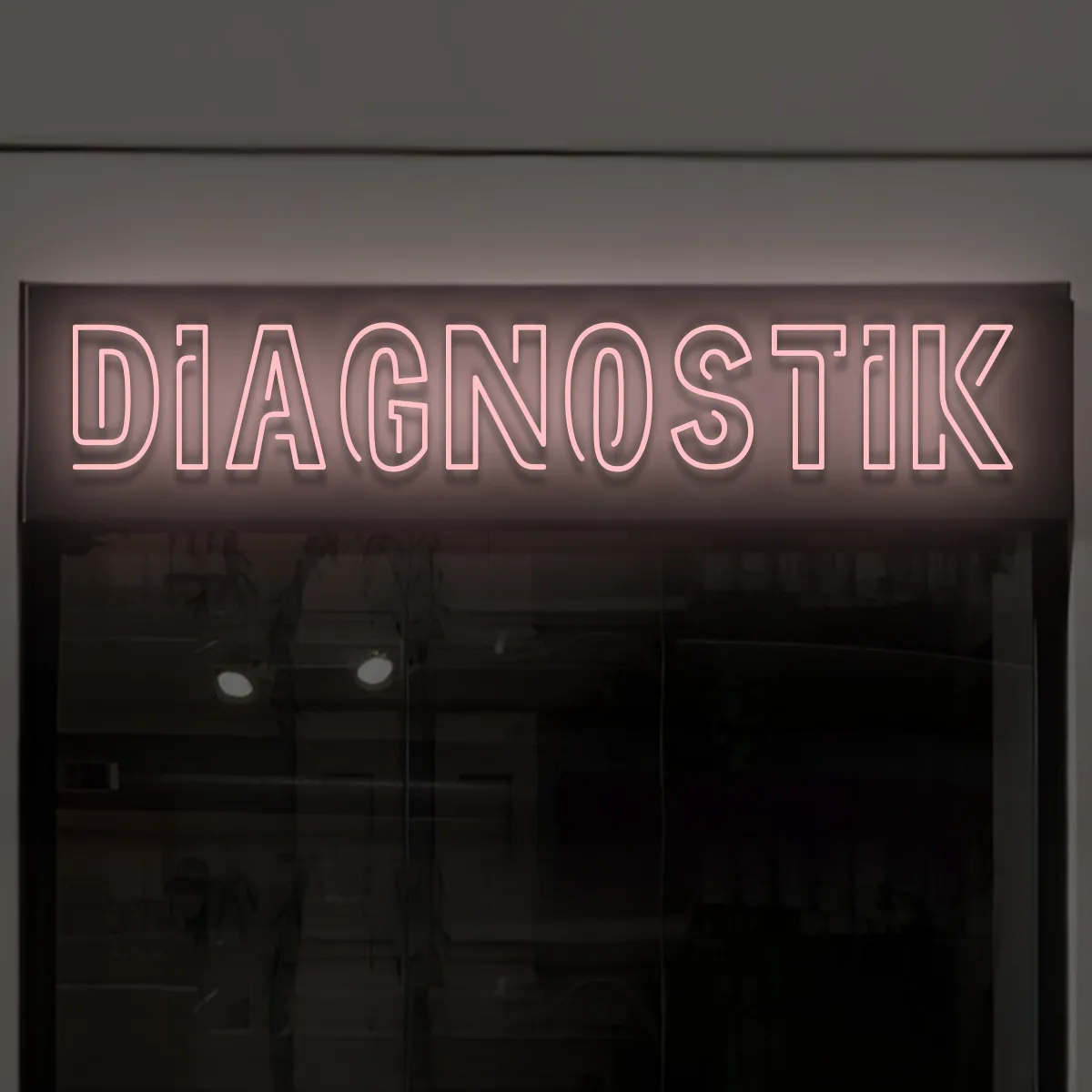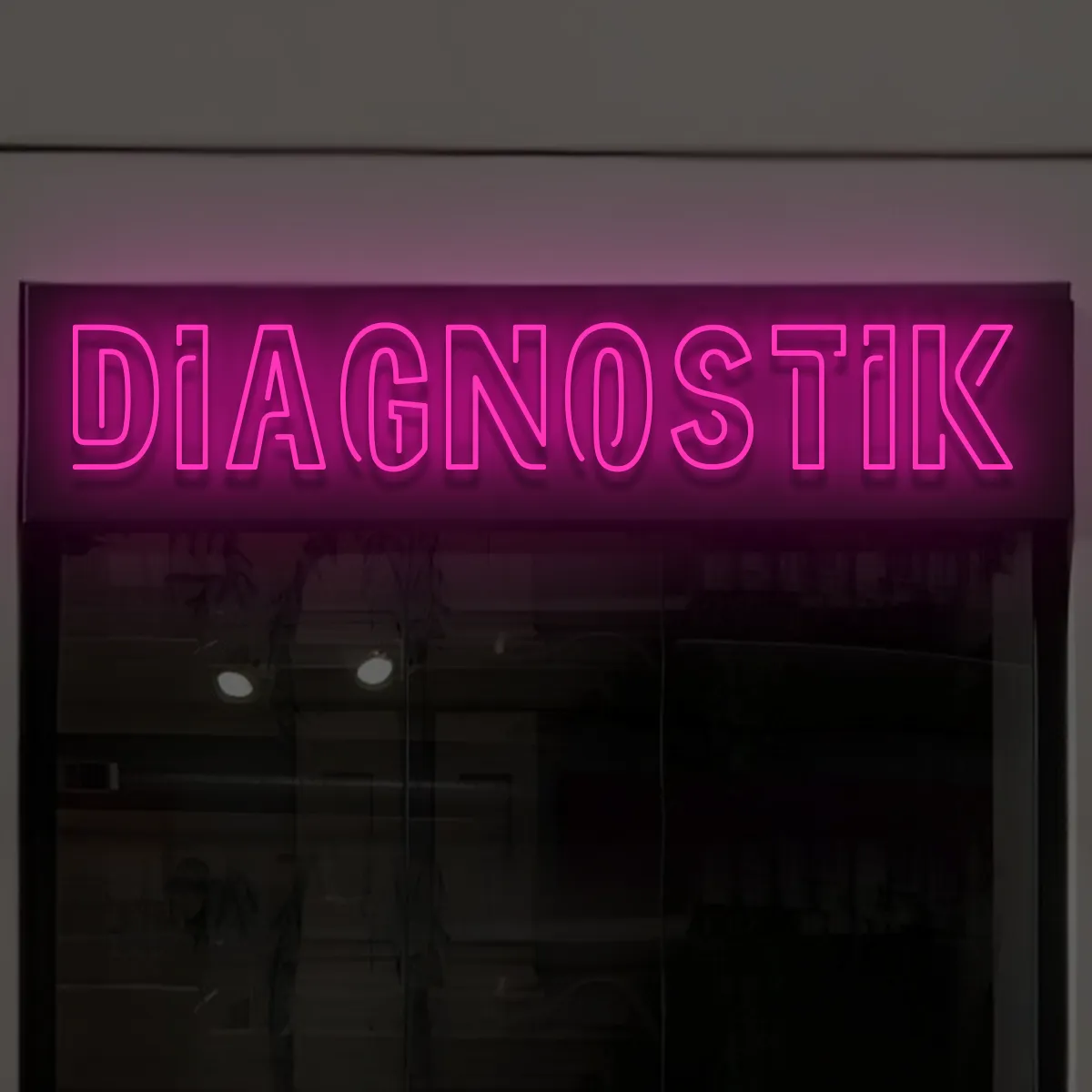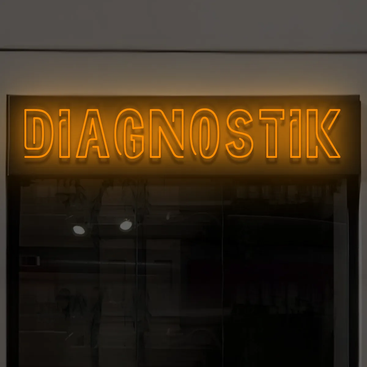 Neon-Schriftzug „Diagnostik“ – moderne LED-Werbung für Kliniken und Labore