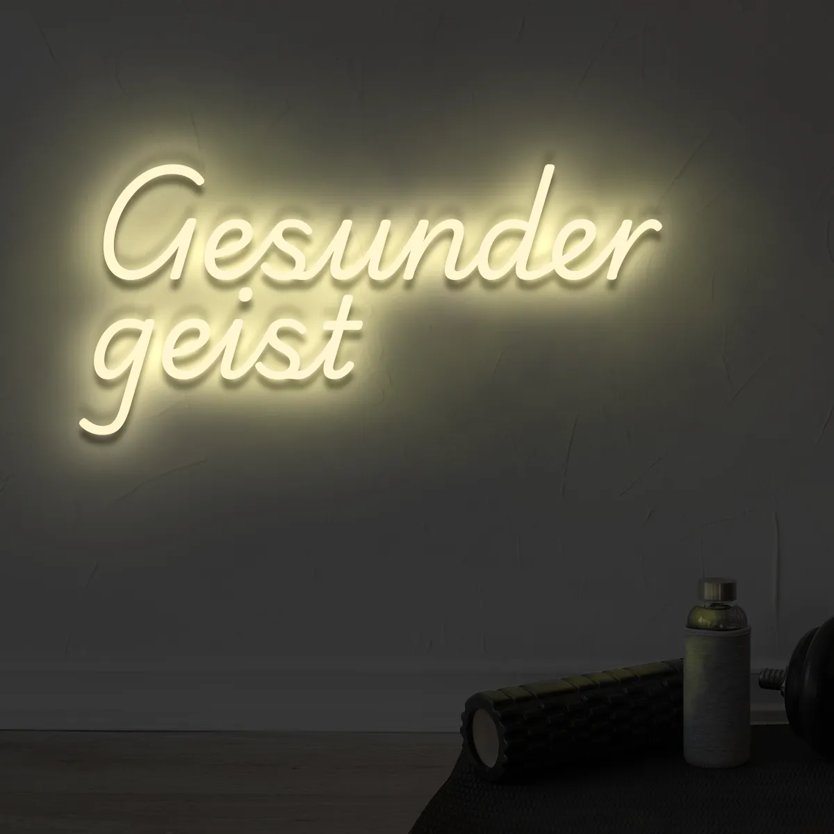 Der Neon-Schriftzug „Gesunder Geist“ erinnert an die Balance zwischen Körper und Seele. Ideal für Fitnessstudios, Yogastudios, Büros oder Homeoffices – er schafft eine Atmosphäre von Klarheit und innerer Ruhe. Das sanfte Licht erfrischt den Raum und inspiriert zu Achtsamkeit.