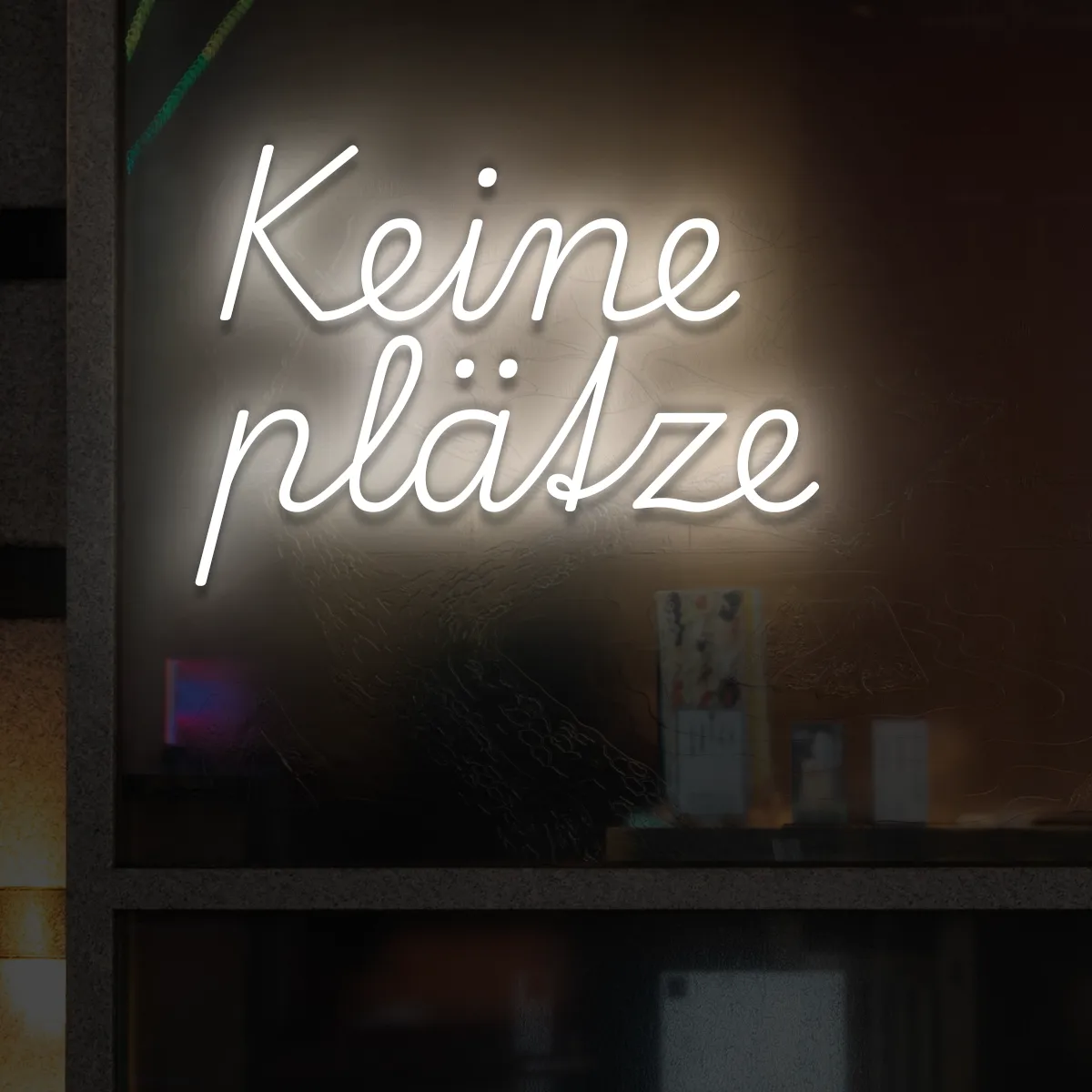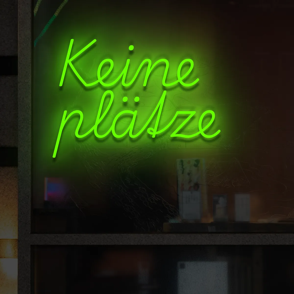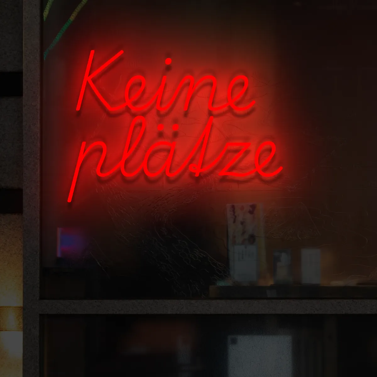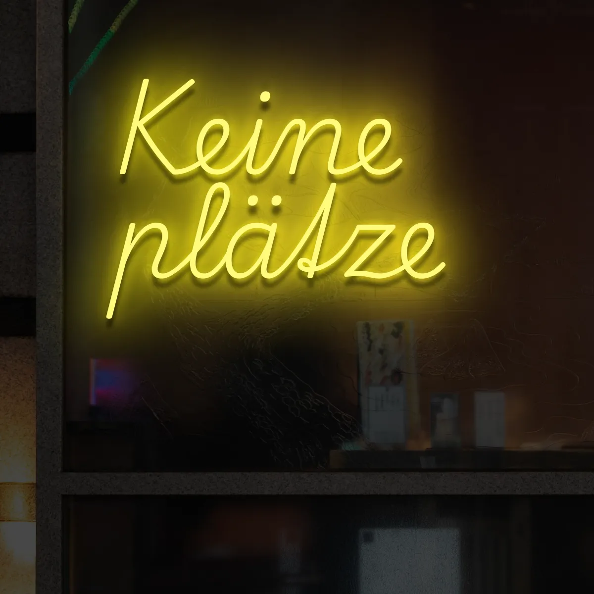 In modernen Geschäftsräumen ist Kommunikation durch Licht ein Trend. Der LED-Schriftzug „Keine Plätze“ ist eine elegante Lösung, um Besucher klar zu informieren. Ideal für Cafés, Fitnessstudios, Salons, Coworkings oder Parkhäuser – wo Klarheit und Stil zählen.