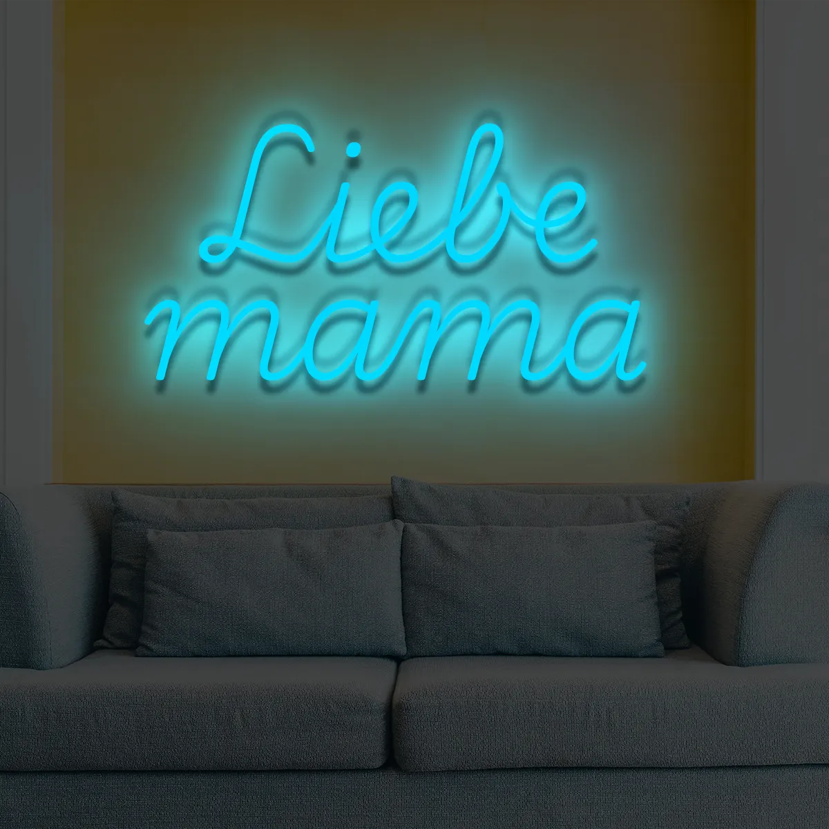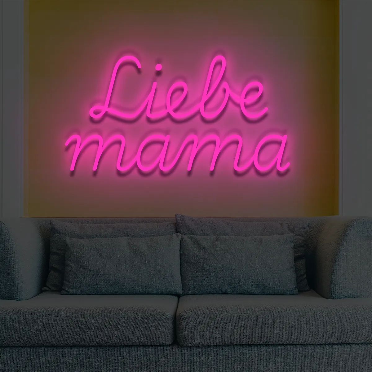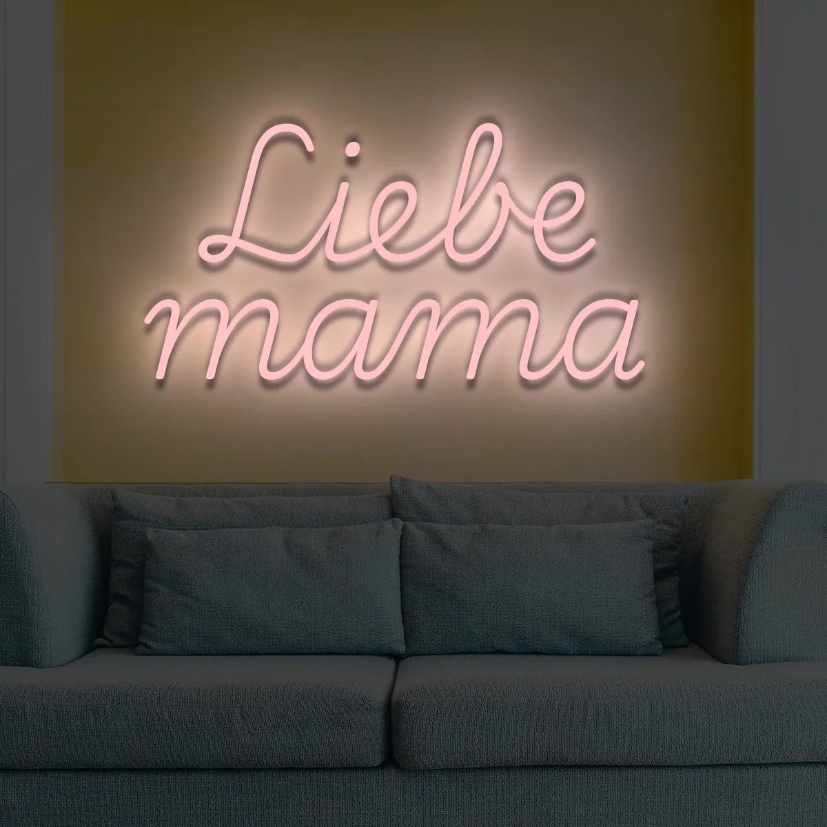 Das Design des LED-Wandschriftzugs ist dezent, klassisch und zugleich zart und elegant. Er kann als dekorativer Schriftzug im Wohnzimmer oder als stilvolles Element im Schlafzimmer angebracht werden. Der Neon-Schriftzug „Liebe Mama“ ist in neun Farbvarianten und verschiedenen Größen erhältlich – so lässt er sich perfekt an jedes Interieur anpassen.