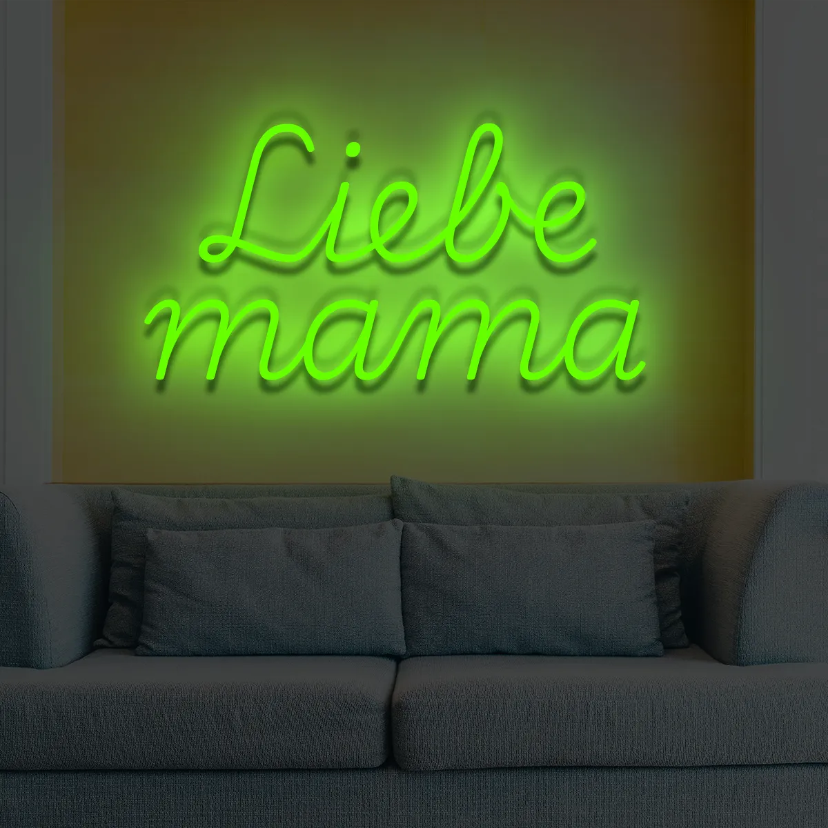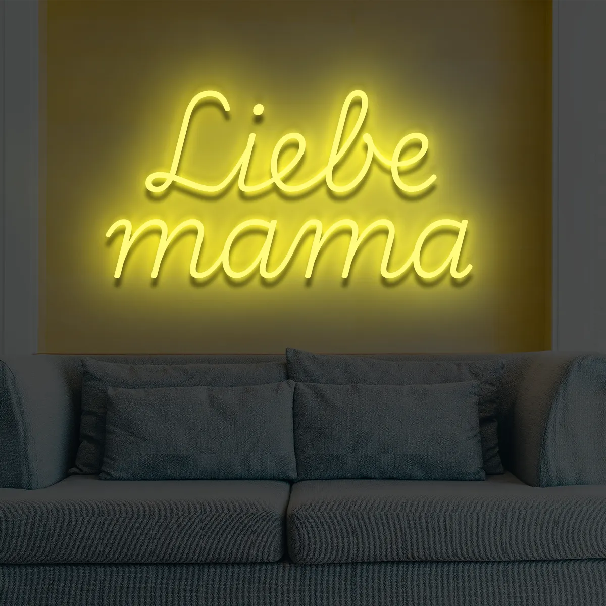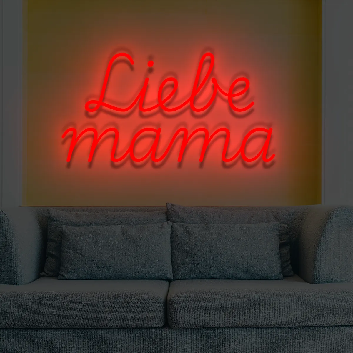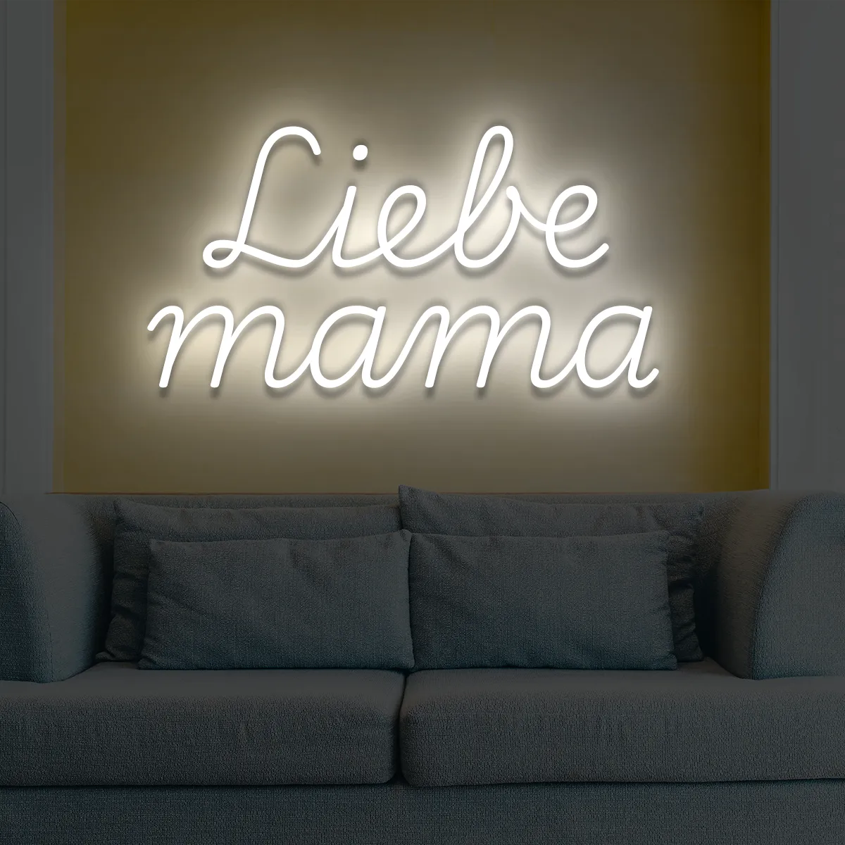 Das Design des LED-Wandschriftzugs ist dezent, klassisch und zugleich zart und elegant. Er kann als dekorativer Schriftzug im Wohnzimmer oder als stilvolles Element im Schlafzimmer angebracht werden. Der Neon-Schriftzug „Liebe Mama“ ist in neun Farbvarianten und verschiedenen Größen erhältlich – so lässt er sich perfekt an jedes Interieur anpassen.