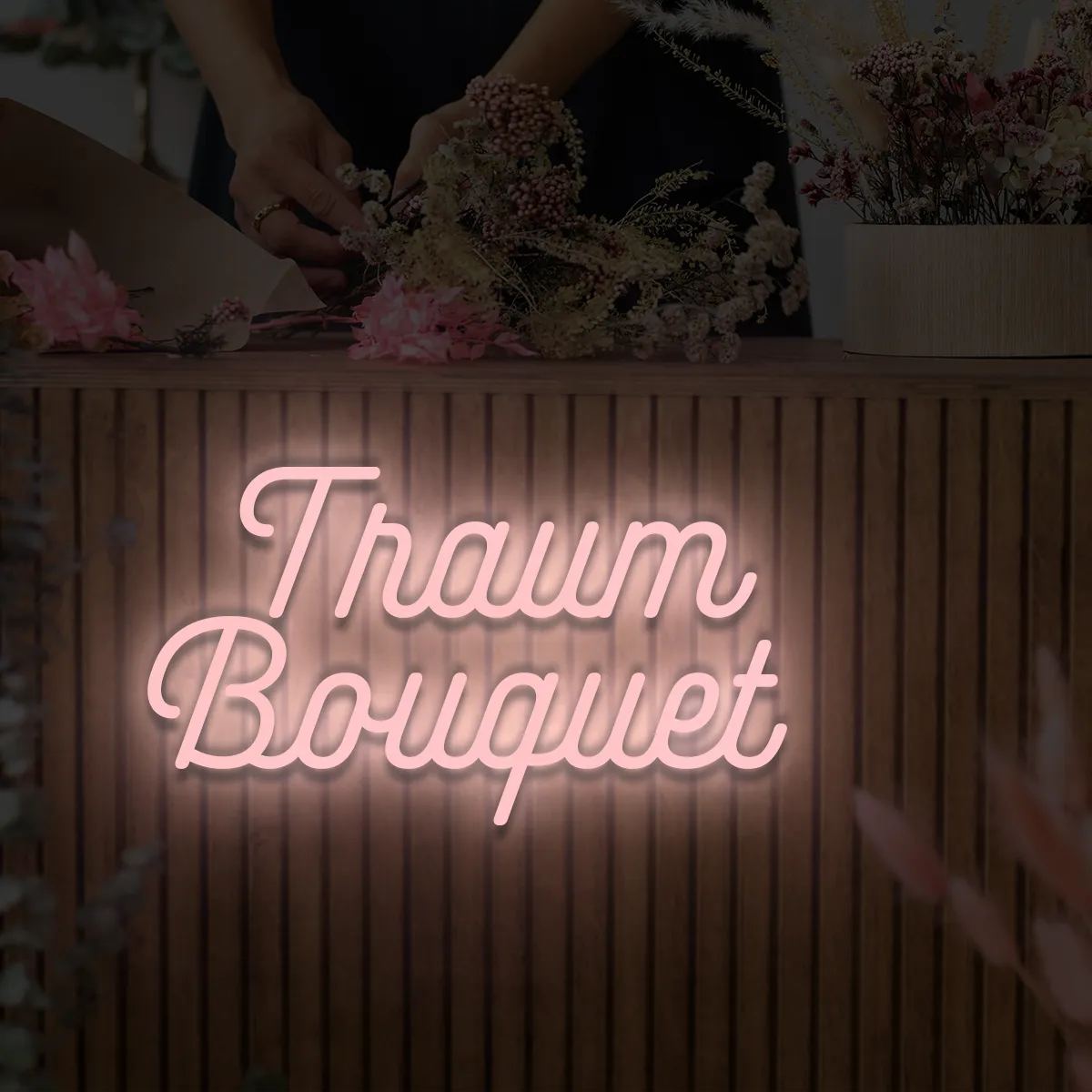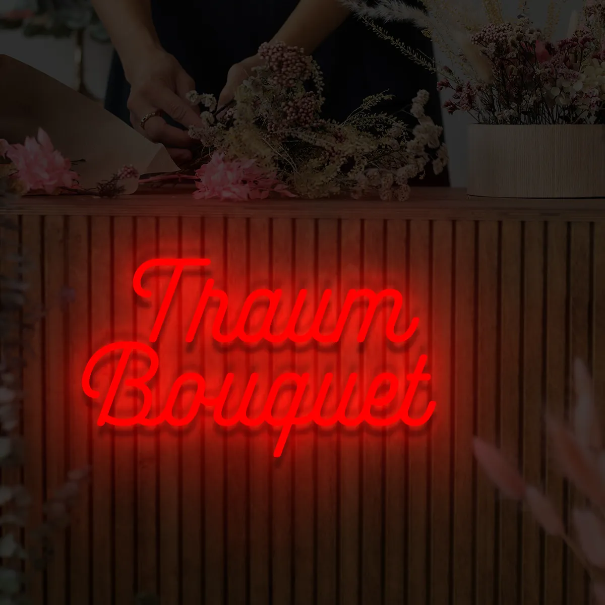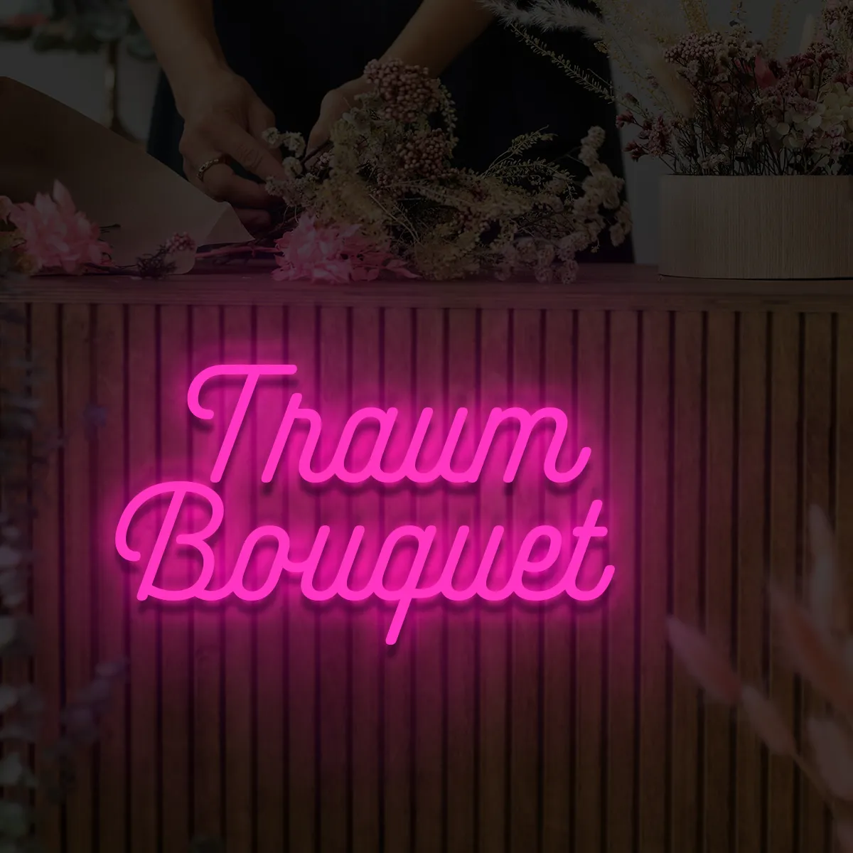 Jeder Blumenladenbesitzer möchte sein Geschäft so gestalten, dass Stilbewusstsein und Professionalität sofort sichtbar werden. Wenn auch Sie dieses Ziel verfolgen, ist der Neon-Schriftzug „Traumbouquet“ genau die richtige Wahl. Er kann als Leuchtschild über dem Eingang, im Schaufenster oder als Innendekoration eingesetzt werden – die leuchtenden Buchstaben wirken in jeder Umgebung beeindruckend und einladend.