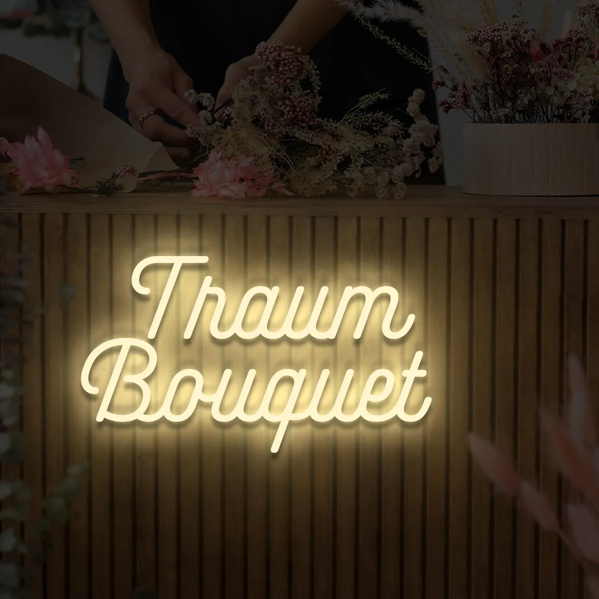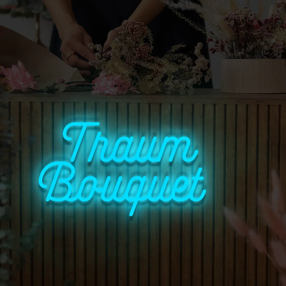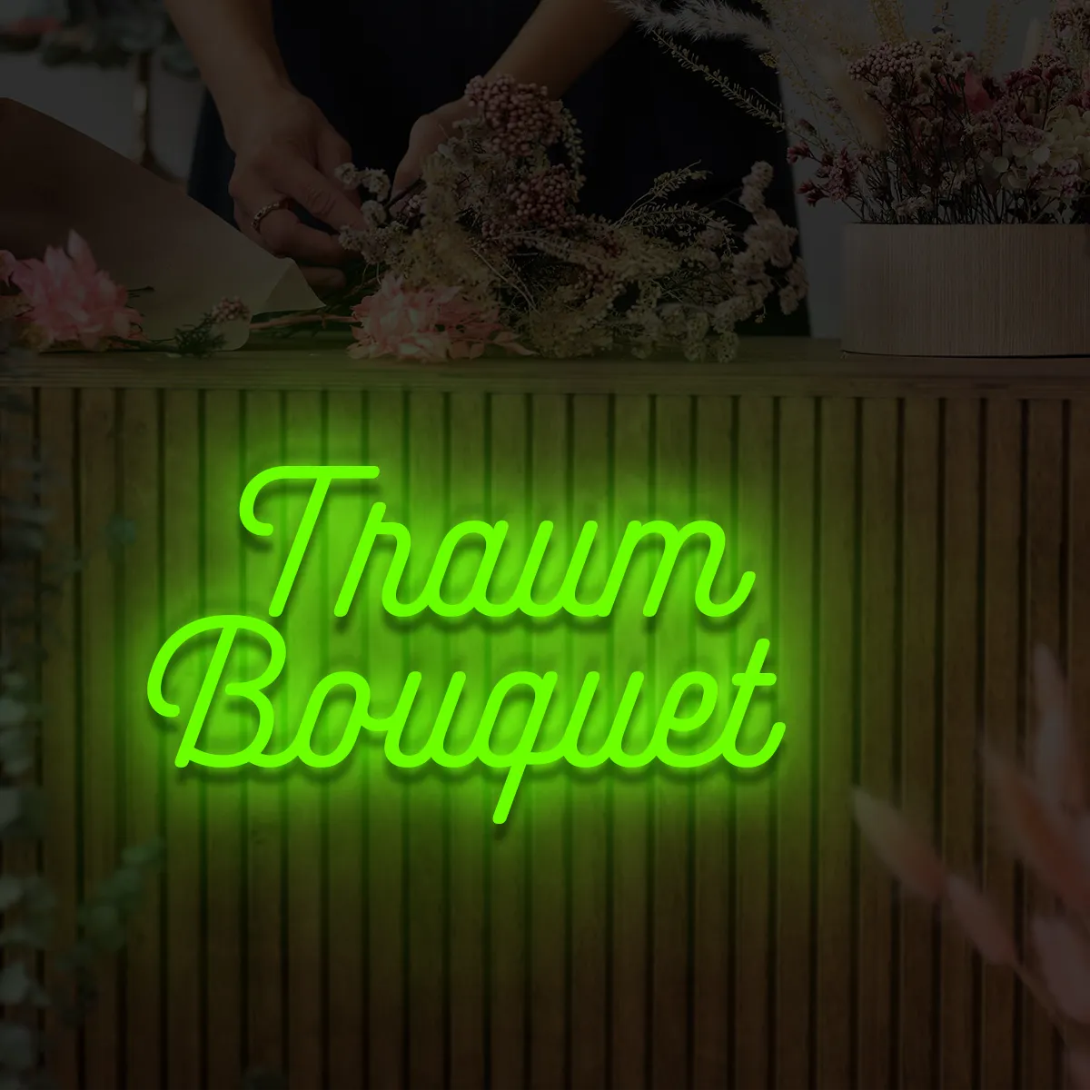 Jeder Blumenladenbesitzer möchte sein Geschäft so gestalten, dass Stilbewusstsein und Professionalität sofort sichtbar werden. Wenn auch Sie dieses Ziel verfolgen, ist der Neon-Schriftzug „Traumbouquet“ genau die richtige Wahl. Er kann als Leuchtschild über dem Eingang, im Schaufenster oder als Innendekoration eingesetzt werden – die leuchtenden Buchstaben wirken in jeder Umgebung beeindruckend und einladend.