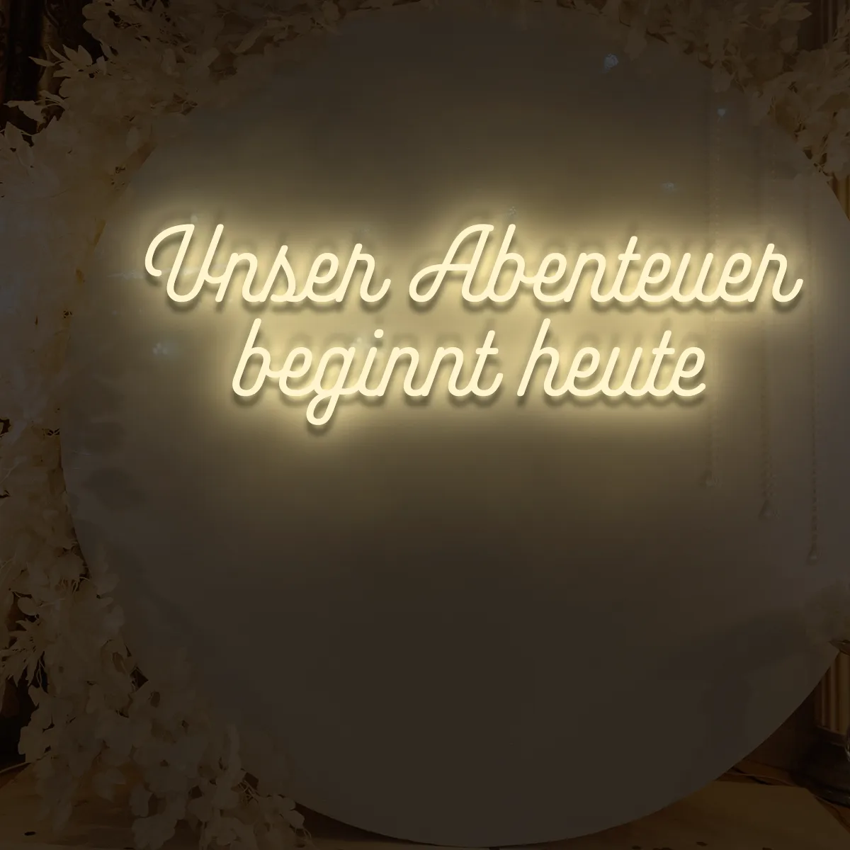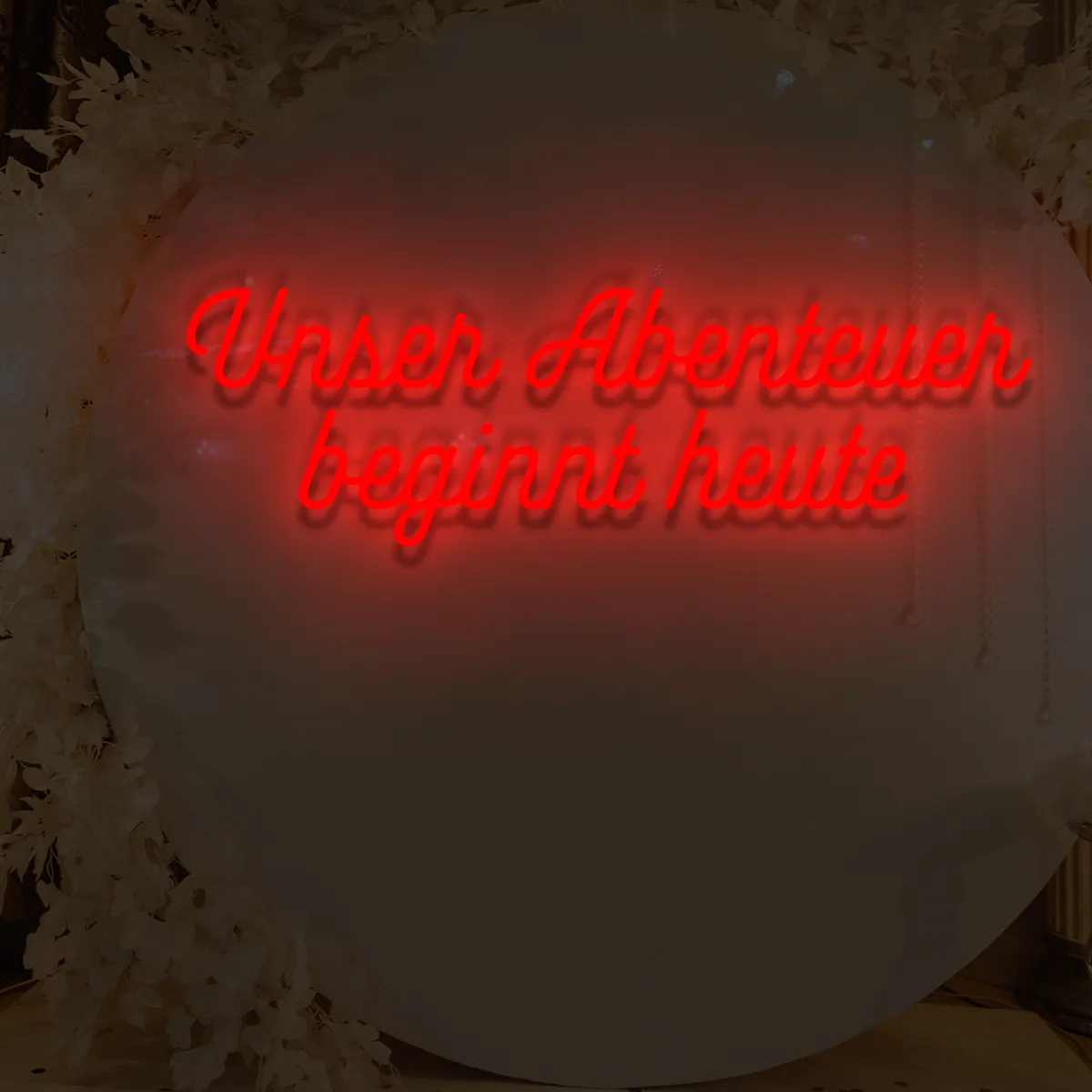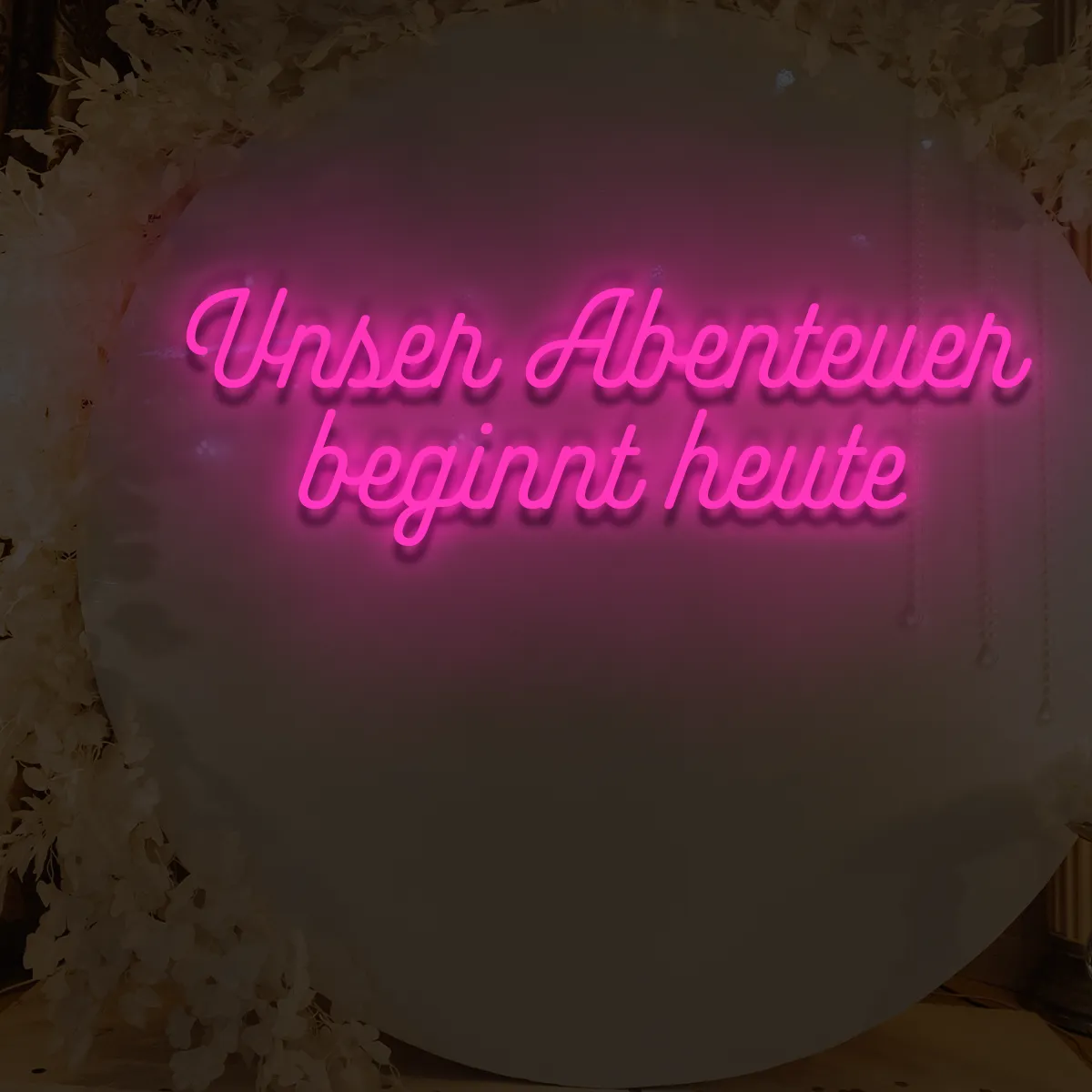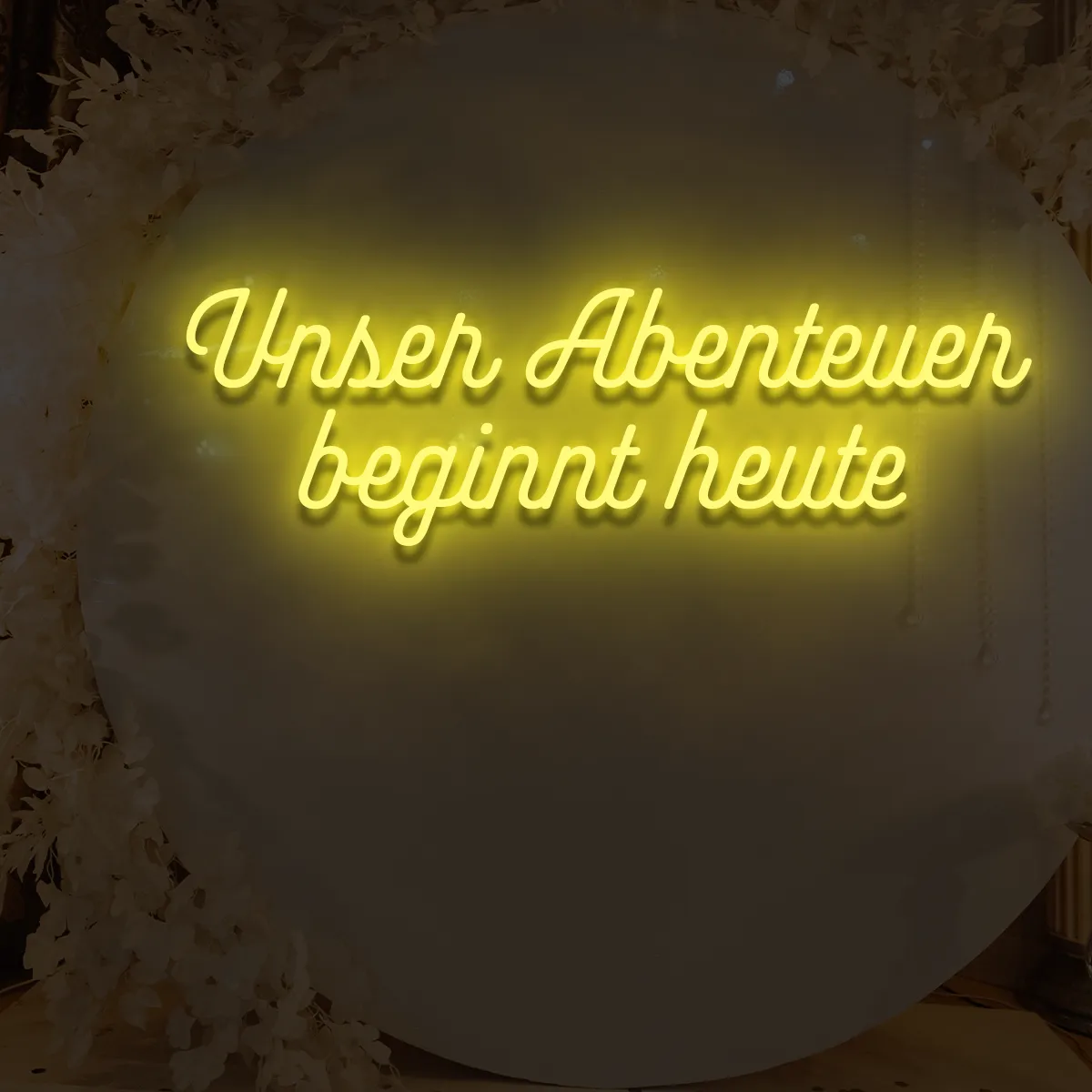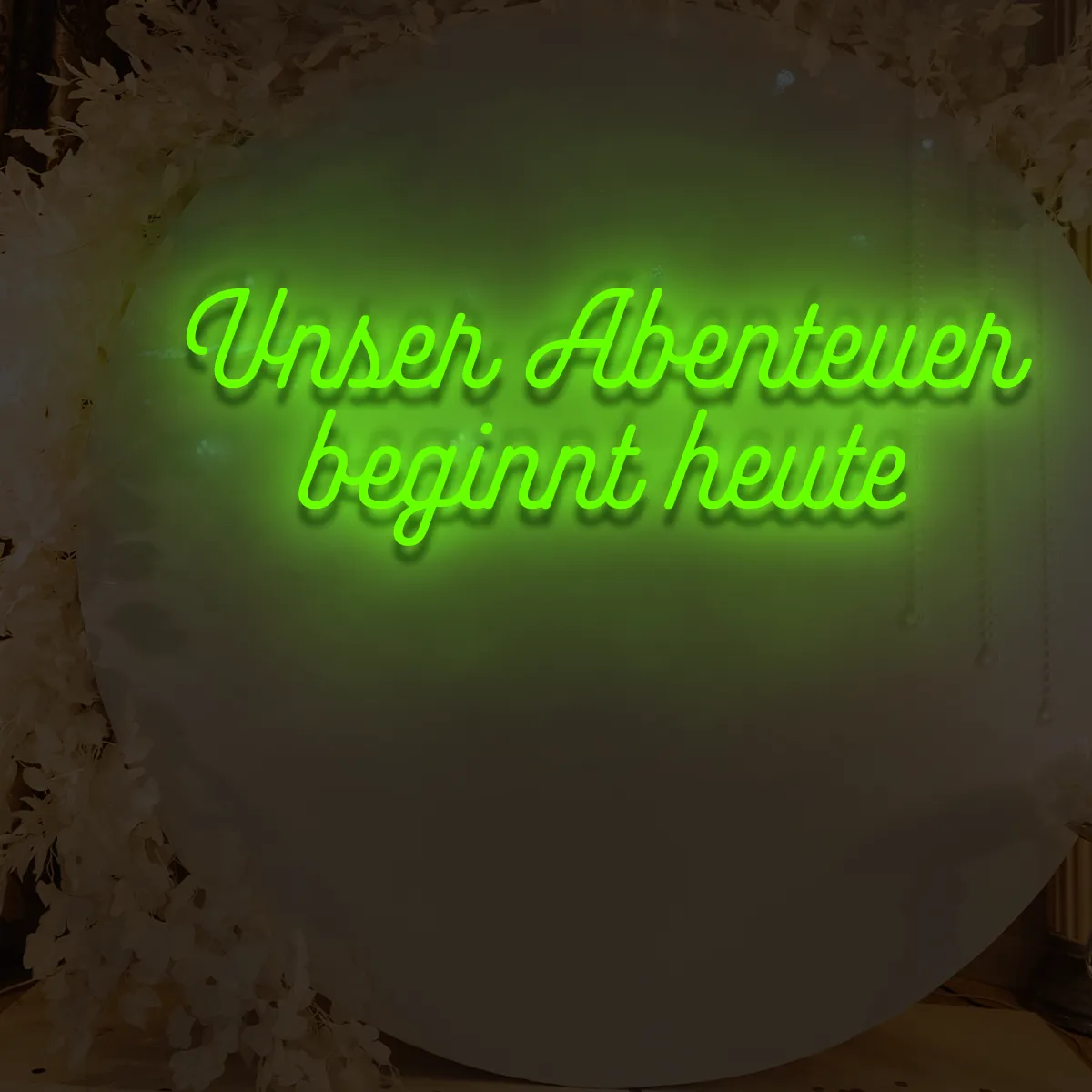 LED-Neonschriftzug „Unser Abenteuer beginnt heute“ – Symbol eines neuen Kapitels
