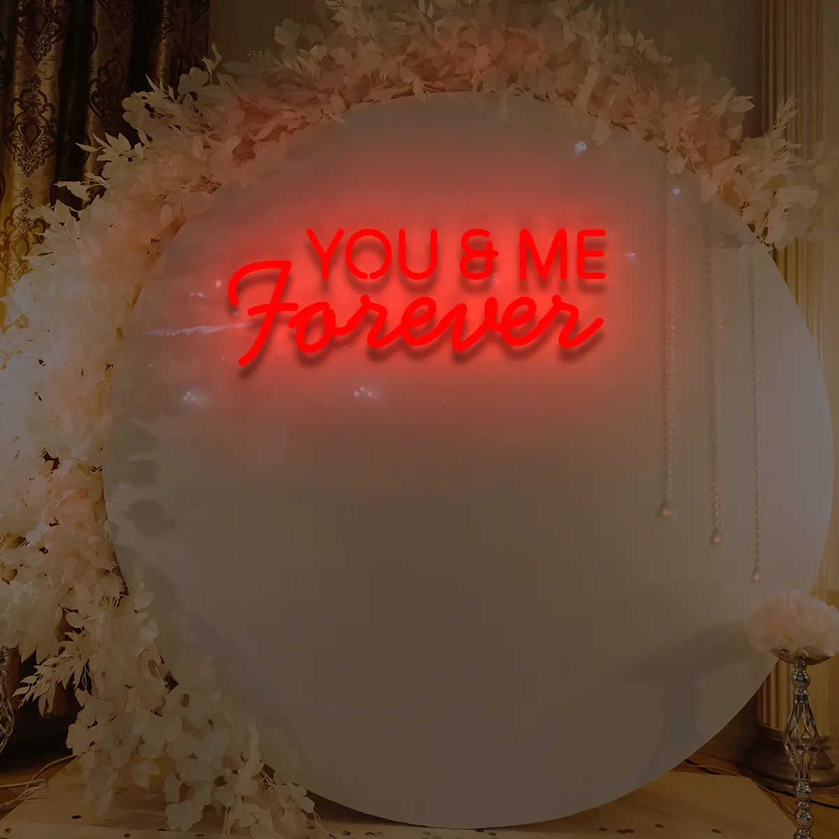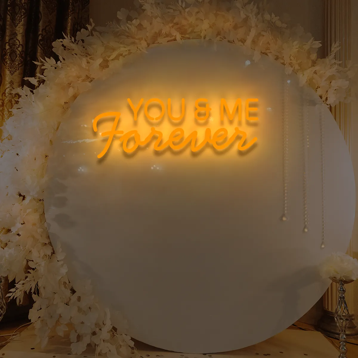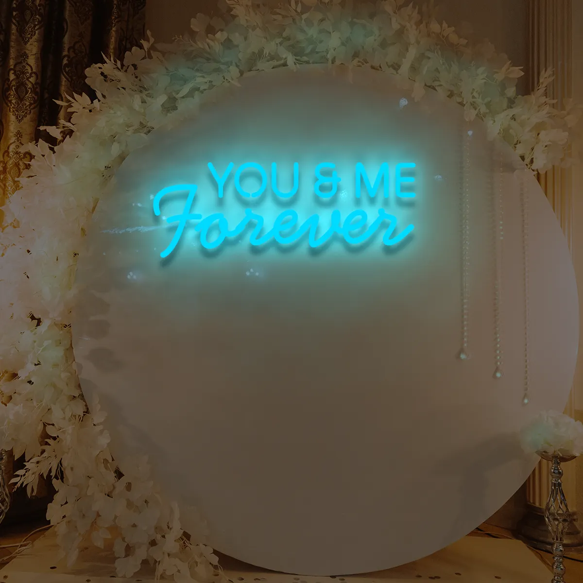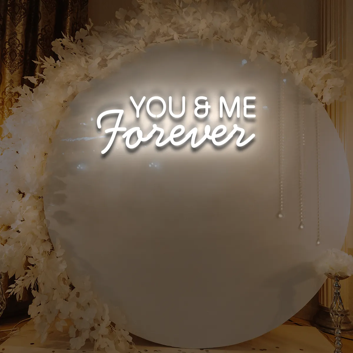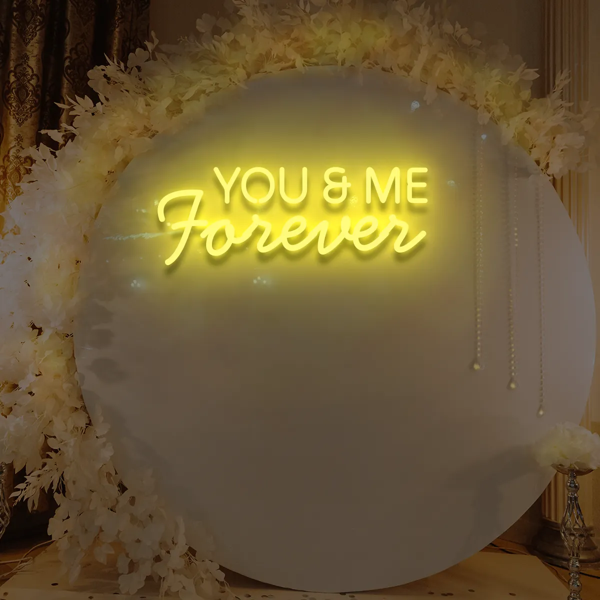 1. Für gewerbliche Räume: Der Schriftzug „You&Me Forever“ ist universell einsetzbar – ideal für Cafés, Lounges oder Bankettsäle.