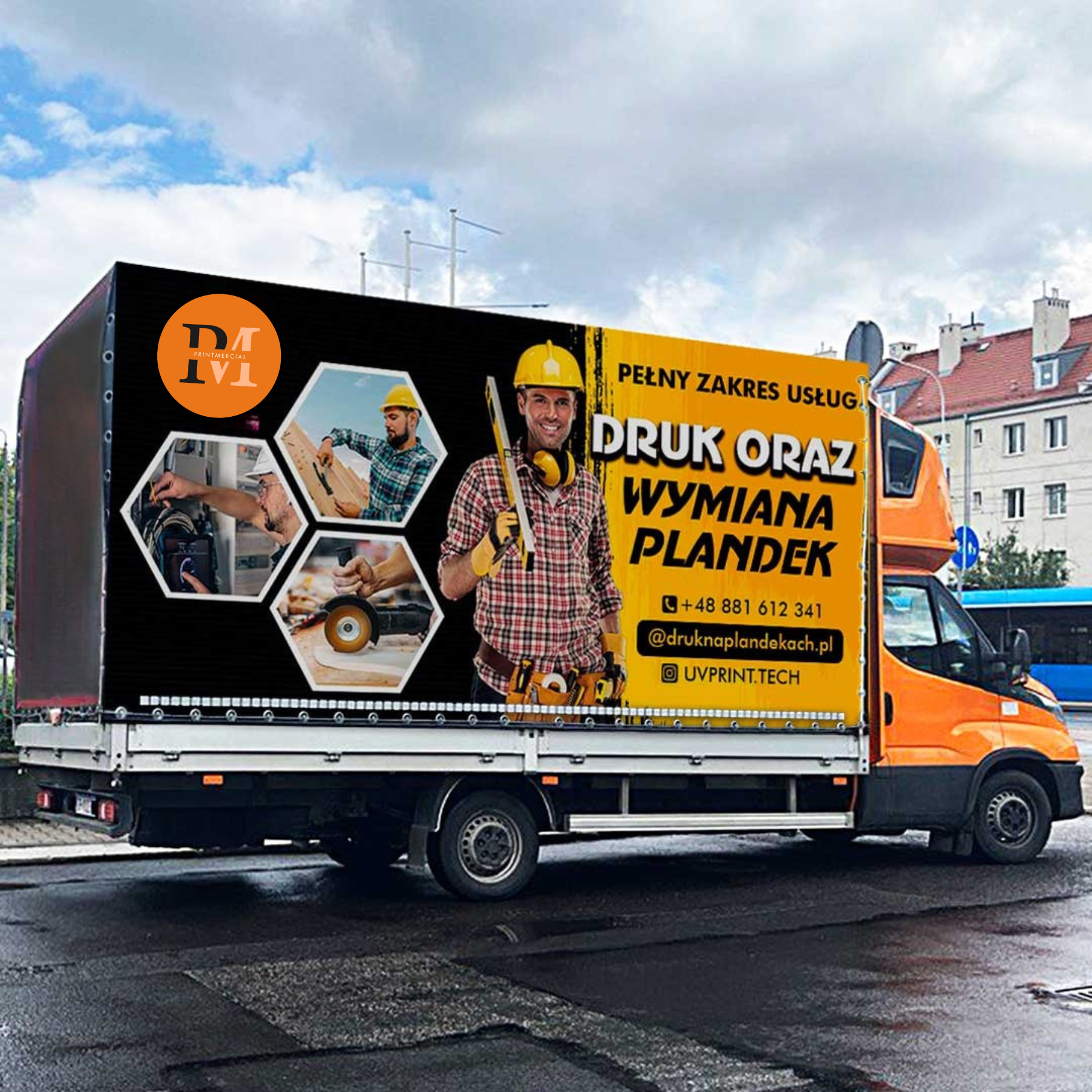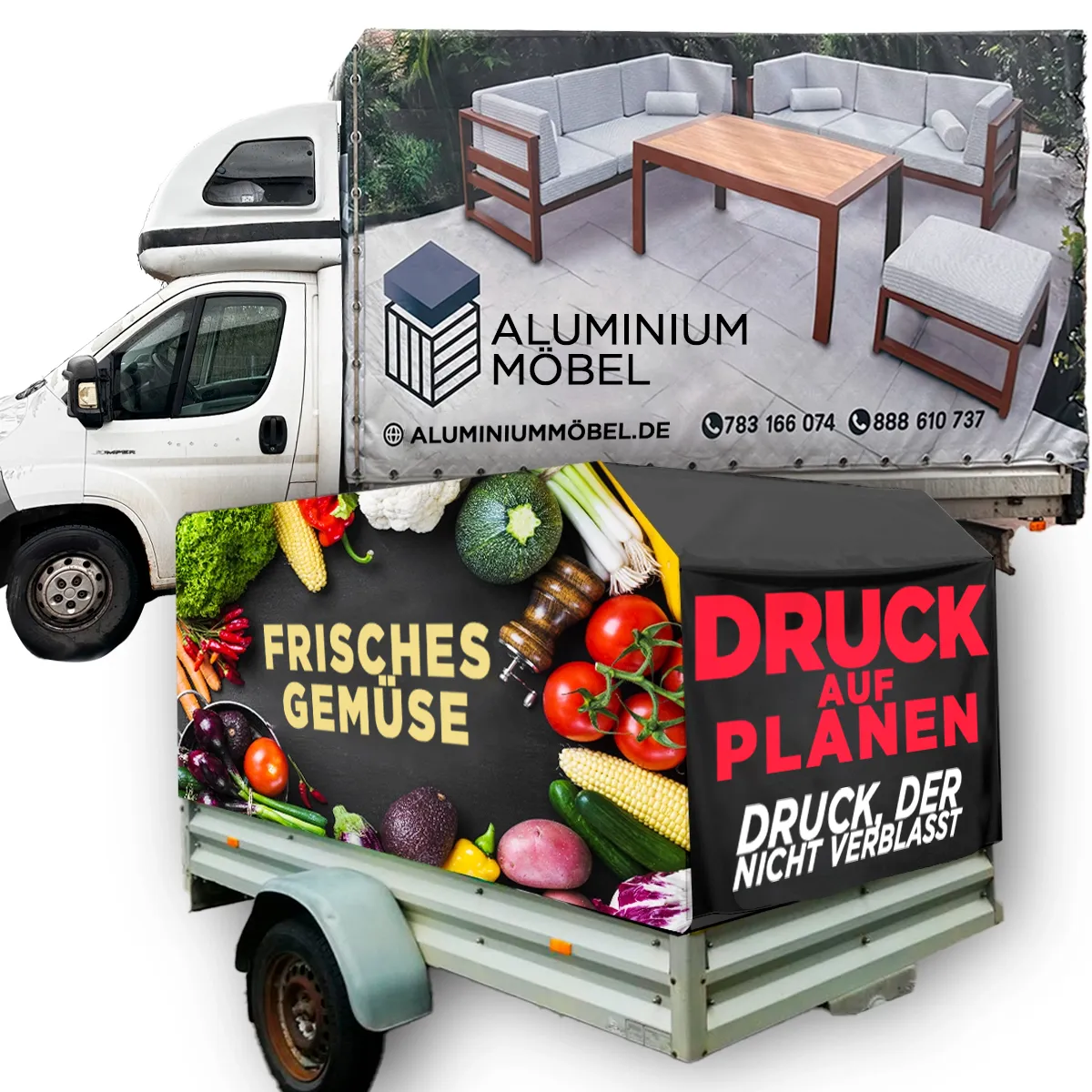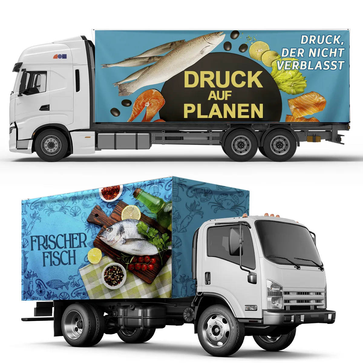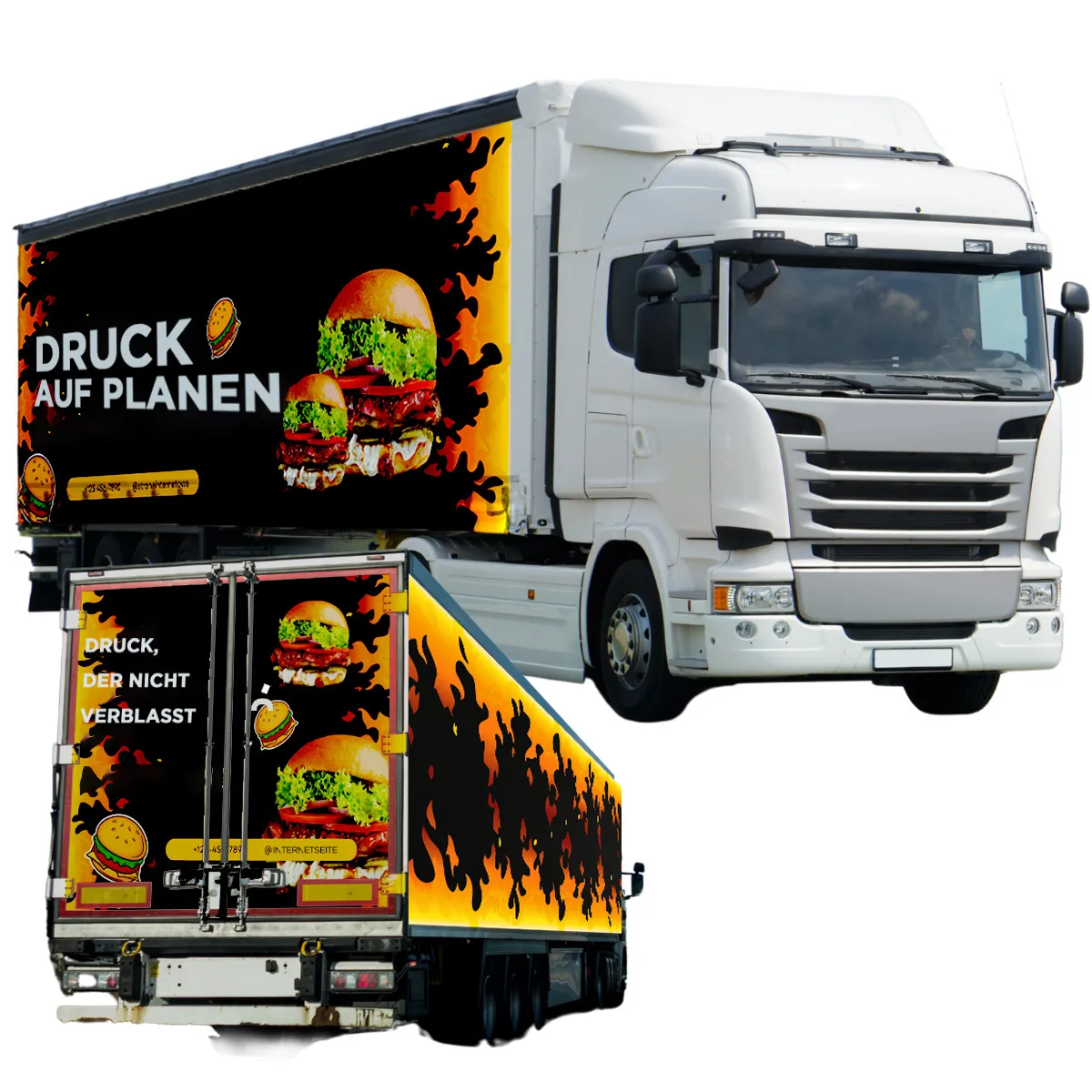 Ein weiterer Bereich des Werbeplanen Drucks ist die Fahrzeugwerbung. Bedruckte LKW-Planen verwandeln Transportfahrzeuge in mobile Werbeflächen, die täglich von Tausenden gesehen werden.