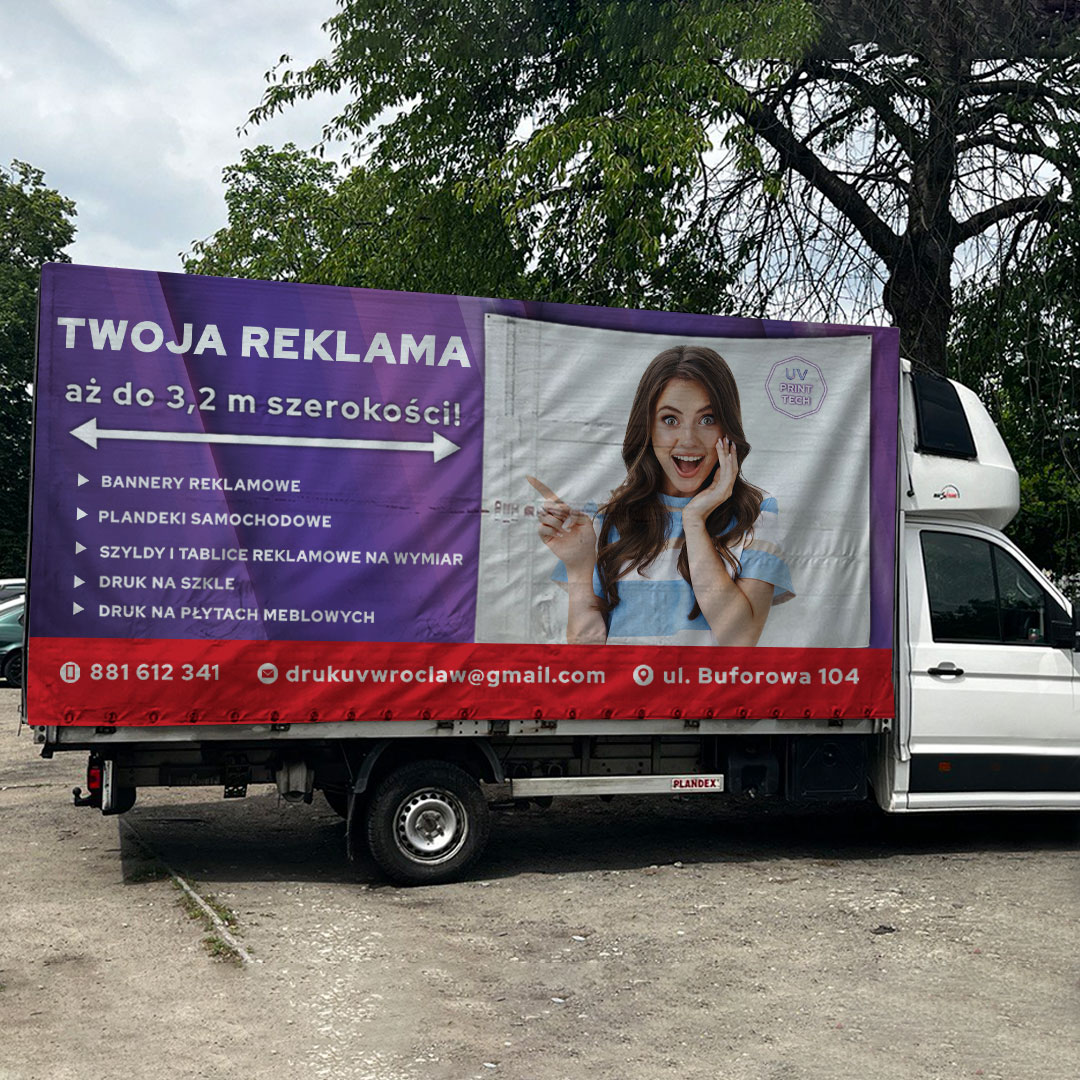 Durch den direkten UV-Druck bleibt Ihr Motiv farbintensiv und haltbar – unabhängig von der Größe oder Komplexität der Grafik. Wir realisieren Branding-Projekte für Transport- und Logistikunternehmen auf Planen von Lieferwagen, LKWs oder Anhängern.